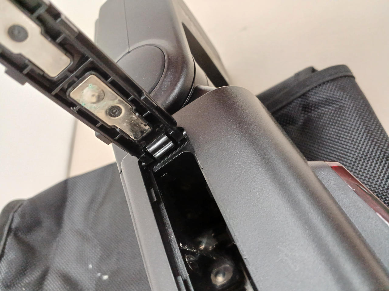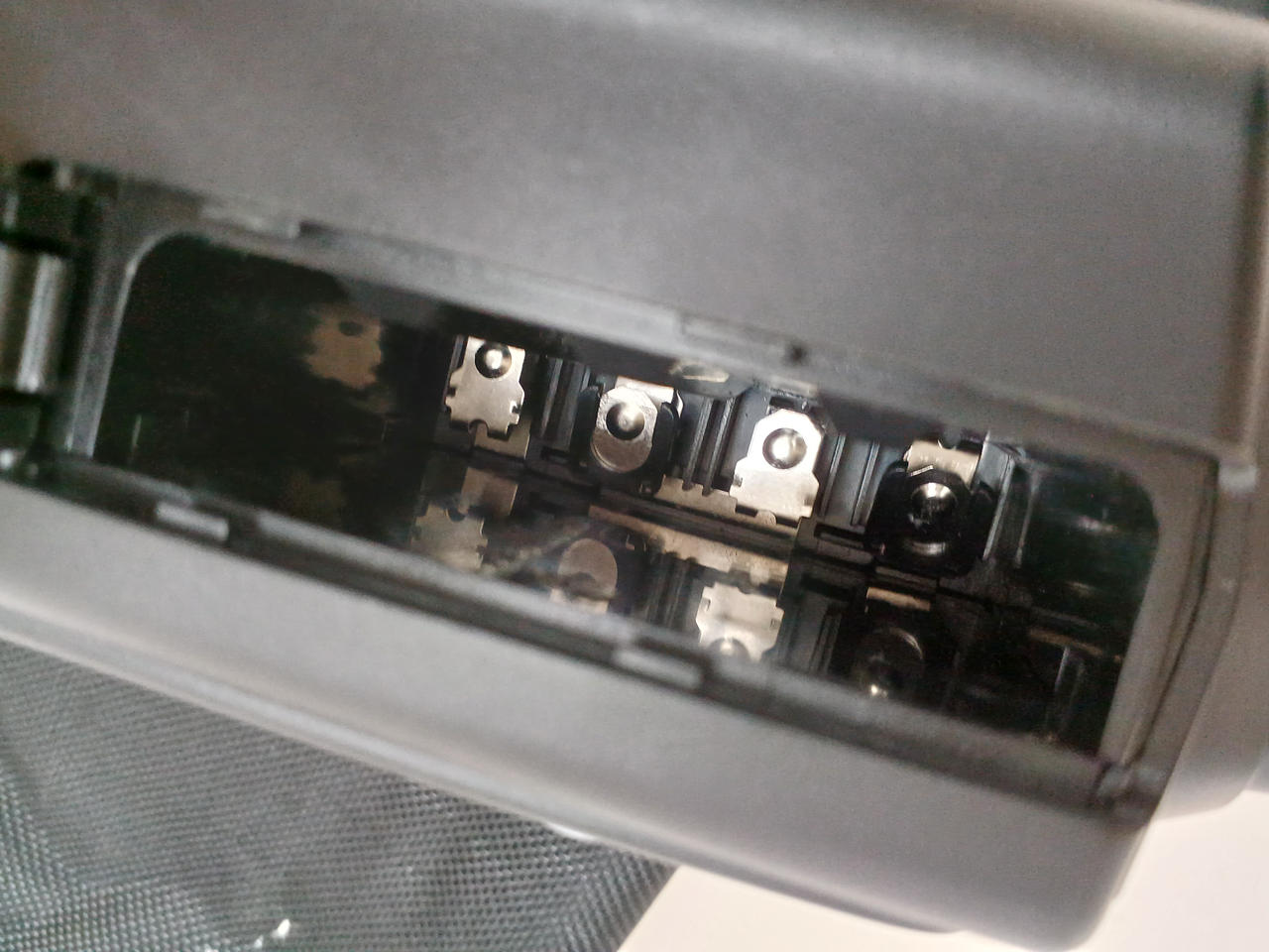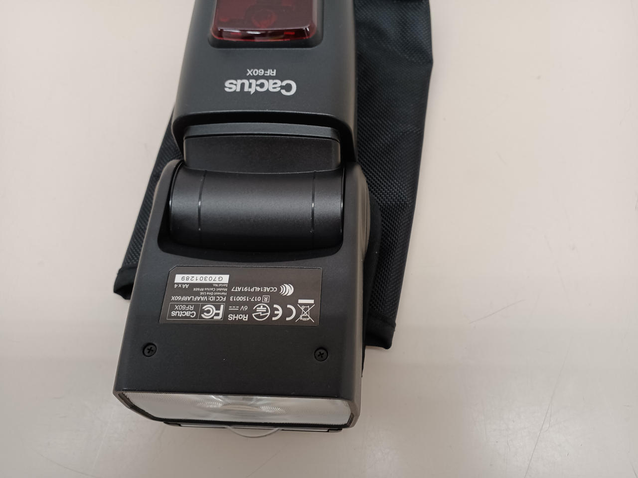 ストロボ本体に液漏れあとがあります。