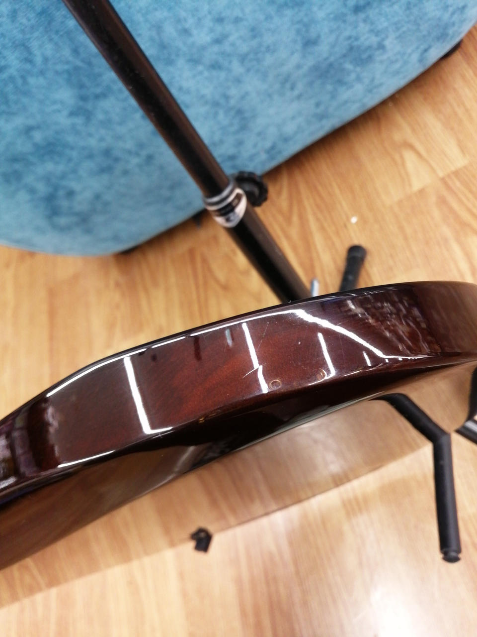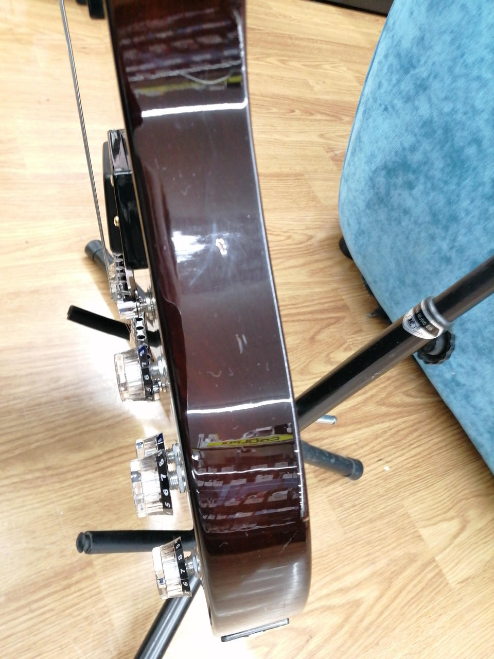 スカーフジョイントらしく、低音弦ローフレットから逆反り、0~2Fビビります! |
