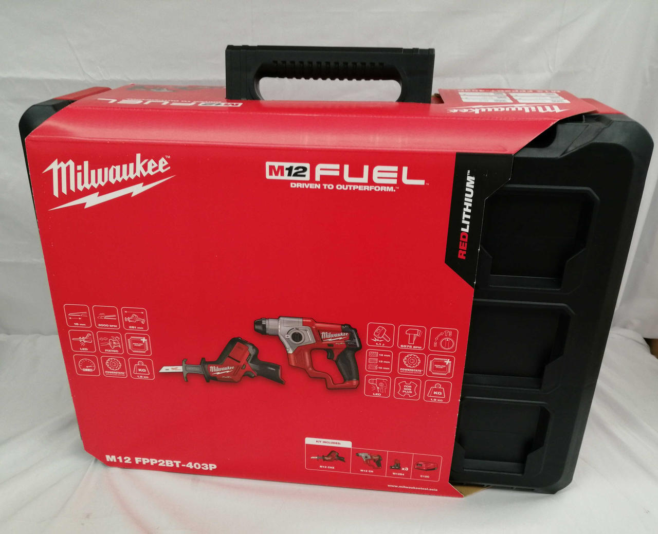 M12 FUEL 工具2種類、バッテリー3個、充電器1個がセットになったパワーパック |