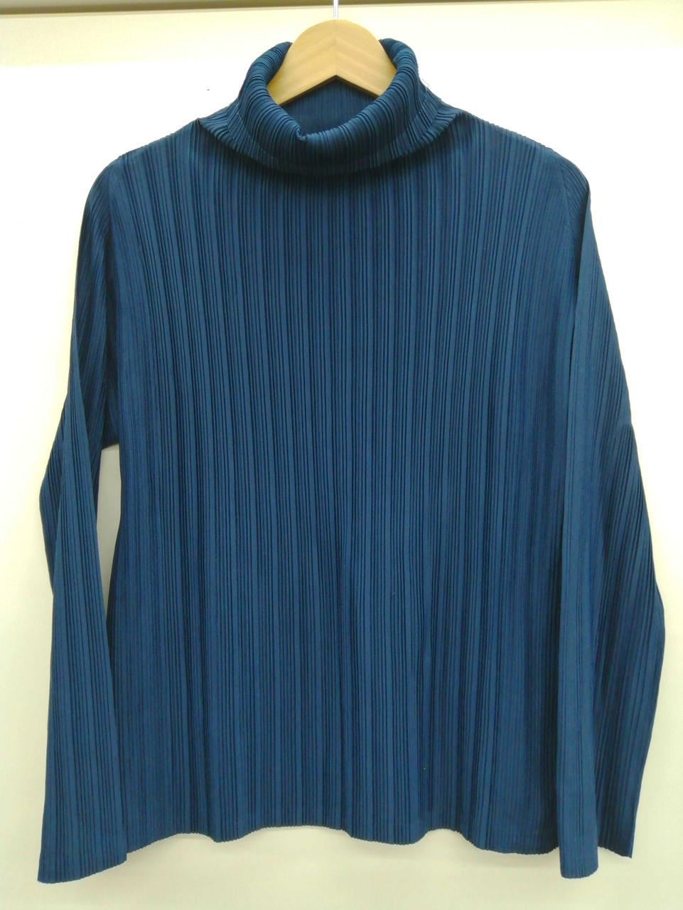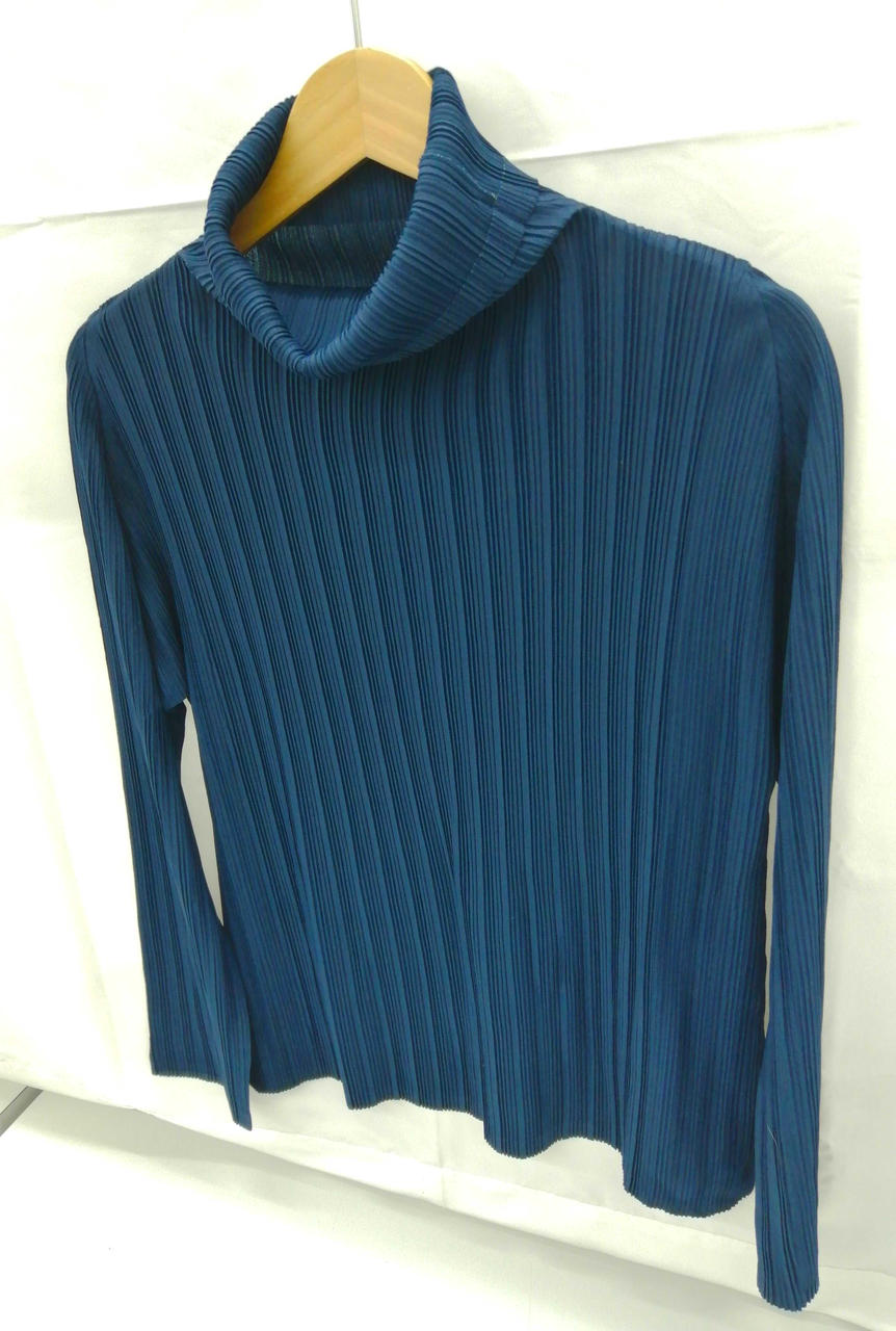 お馴染みISSEY MIYAKEの「PLEATS PLEASE」シリーズ、ネイビーのタートルネック風! |