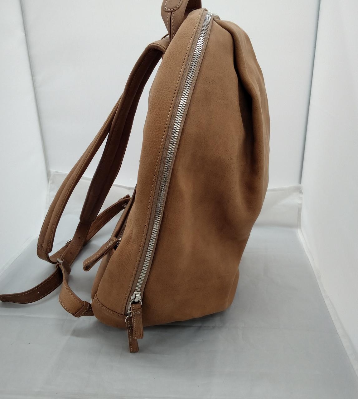 A4のファイルやノートPCなどがすっぽり収納。両肩に背負うことで重いものを楽に持ち運べるので、デイリーにお使いいただけます。すべてのパーツがアルテシュリンク。幅広の肩ベルトや背負ったときの加重のバランスを考え、「オールレザーだから重いのは仕方ない」と思うことを忘れてしまうほど軽量です。染料仕上げなのでお使い初めには、ショルダーや腰上に当たる部分の洋服などに移色する場合がありますが、洗濯で落としていただけます。使い進めて表面にツヤが出てきたら移色は落ち着きますが、明るい色や深い色を選ばれた方はご注意が必要です。タックの伸縮により内容量の変化に対応します。出張で着替えが必要、出かけ先でストールをしまいたい。入れる量より多くなるとき、タックを広げるとマチがふくらんで荷物をプラスできます。かさばるものを入れないときは、タックを深めにすると抑えた内容量に。見た目も一回り小さい印象になります。タックの伸縮で表情にも変化が。広げた状態では凹凸が少なくなるので、大判の一枚革を堪能できます。タックがしっかり入ったときは縦にラインが入り、斜めの角度から見る濃い陰は彫刻のようなかっこよさです。