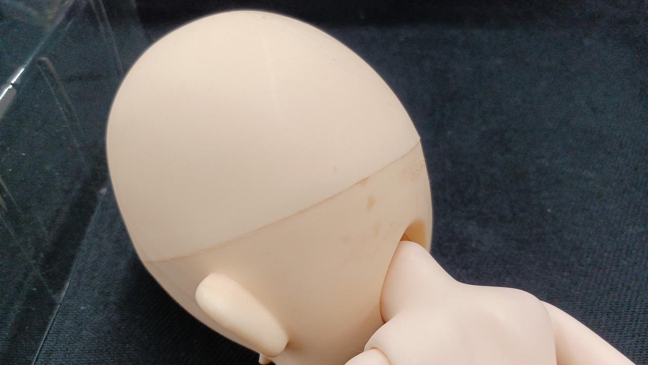 後頭部に粘着テープの痕?が付着しています。 |