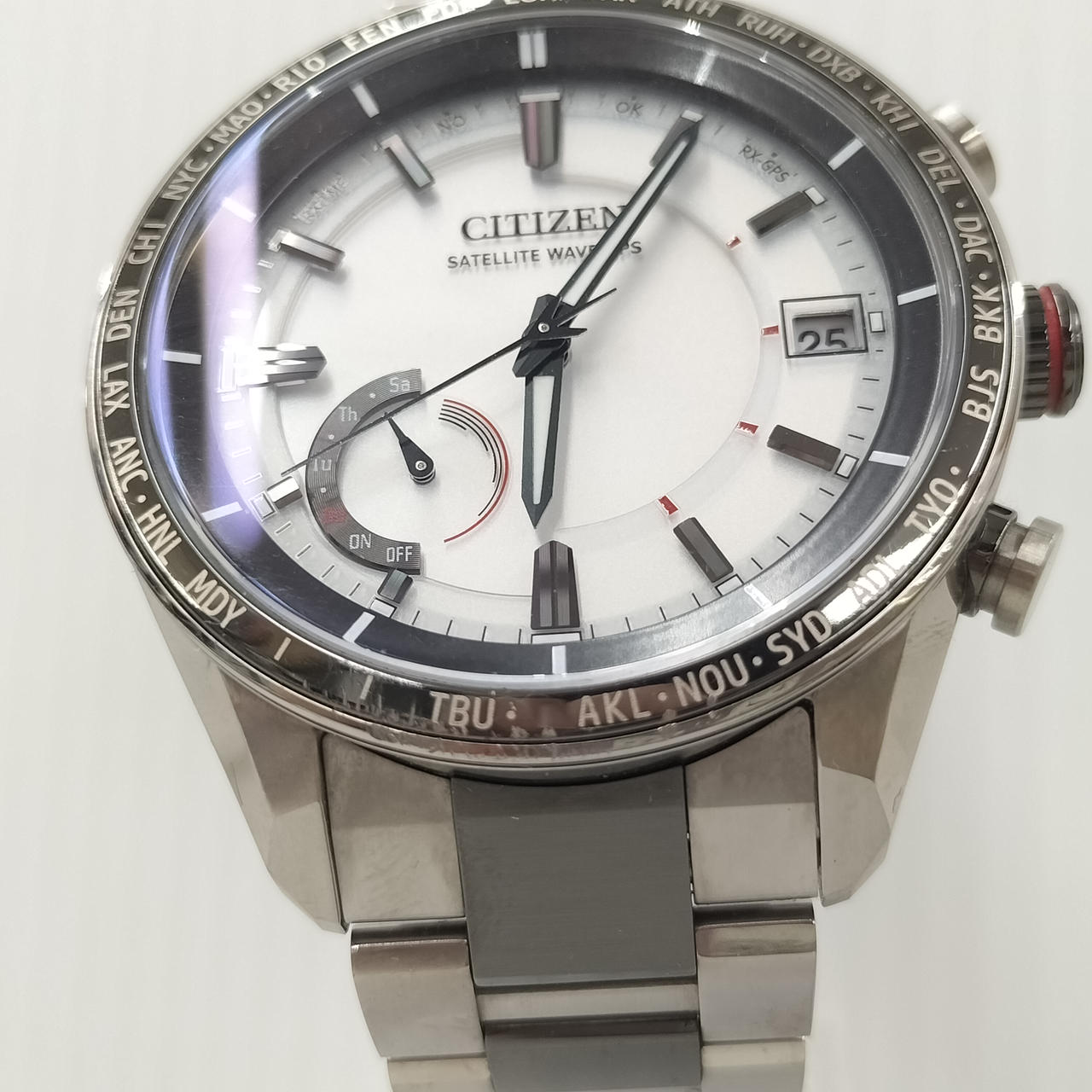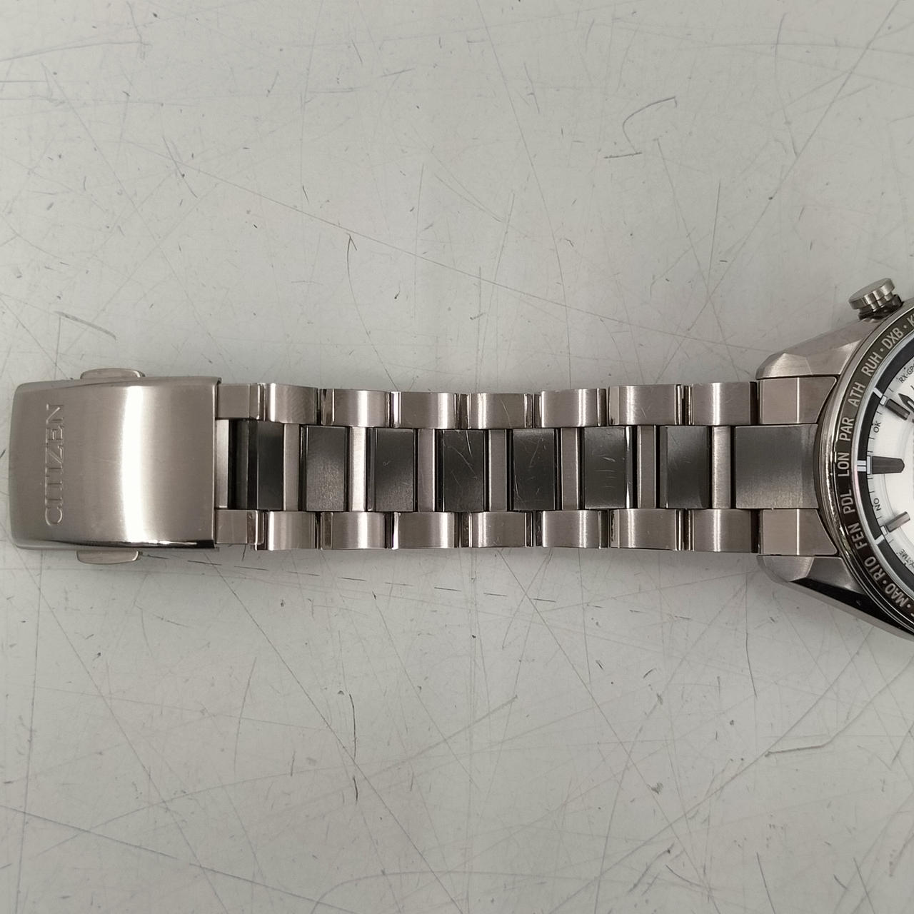 ベゼル縁に擦り傷あり。12時あたりと6時〜7時あたりに目立ちます。 |