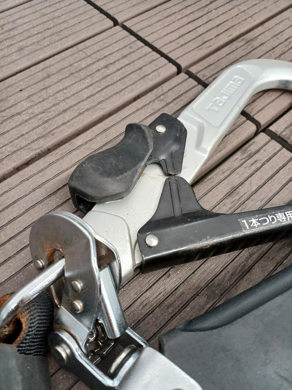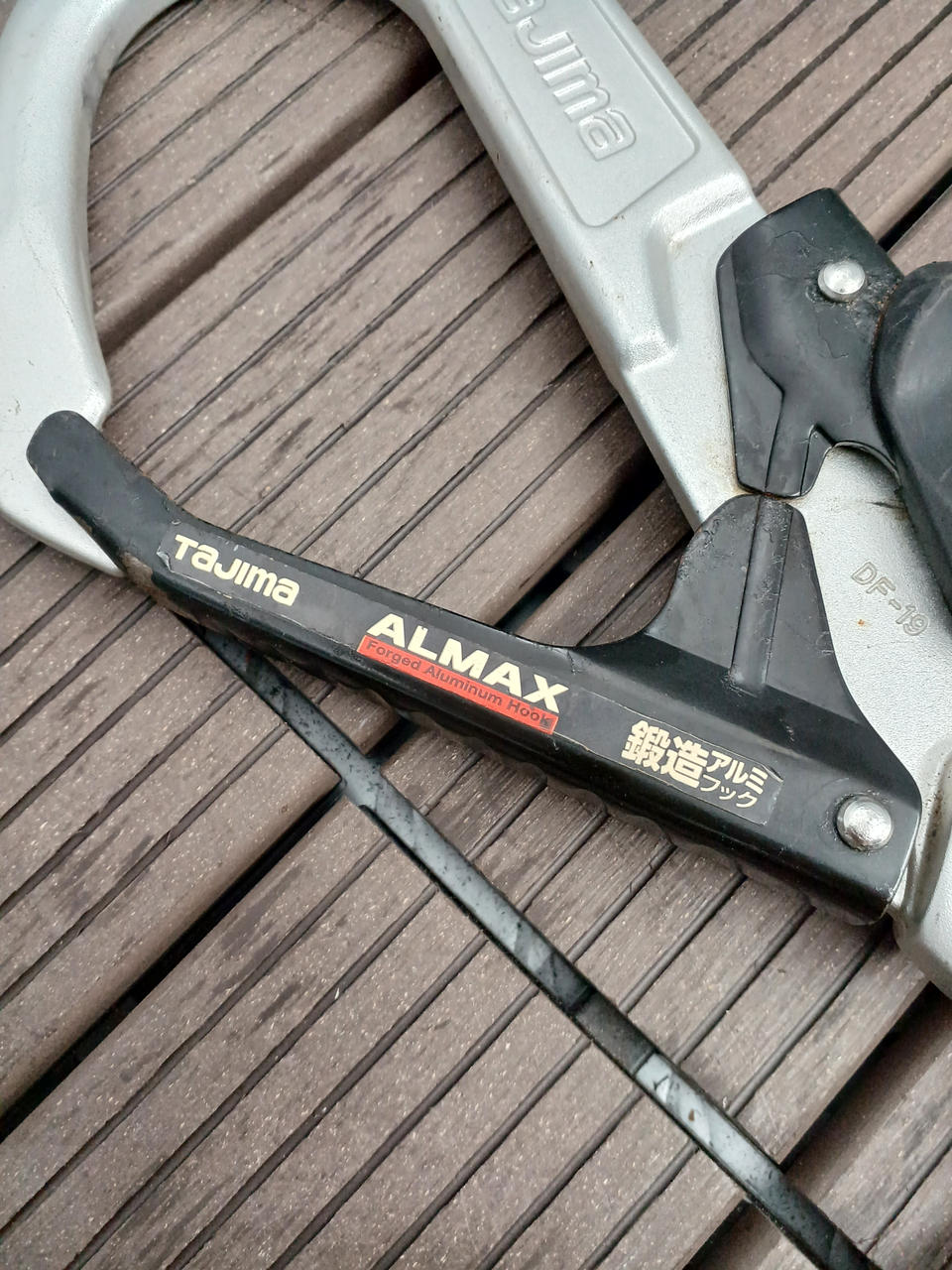 軽量鍛造アルミフックALMAX採用(U字つり防止形状) |