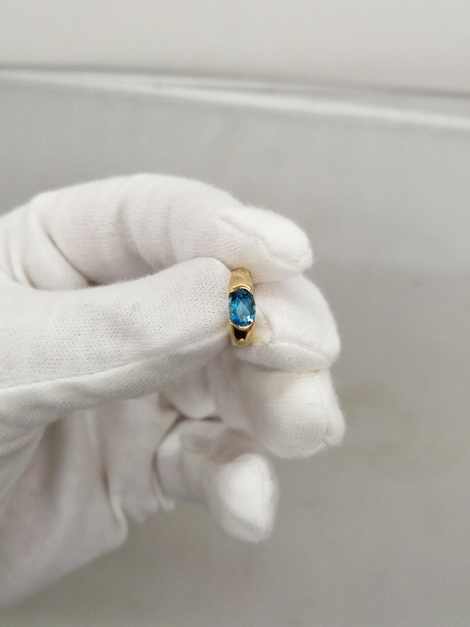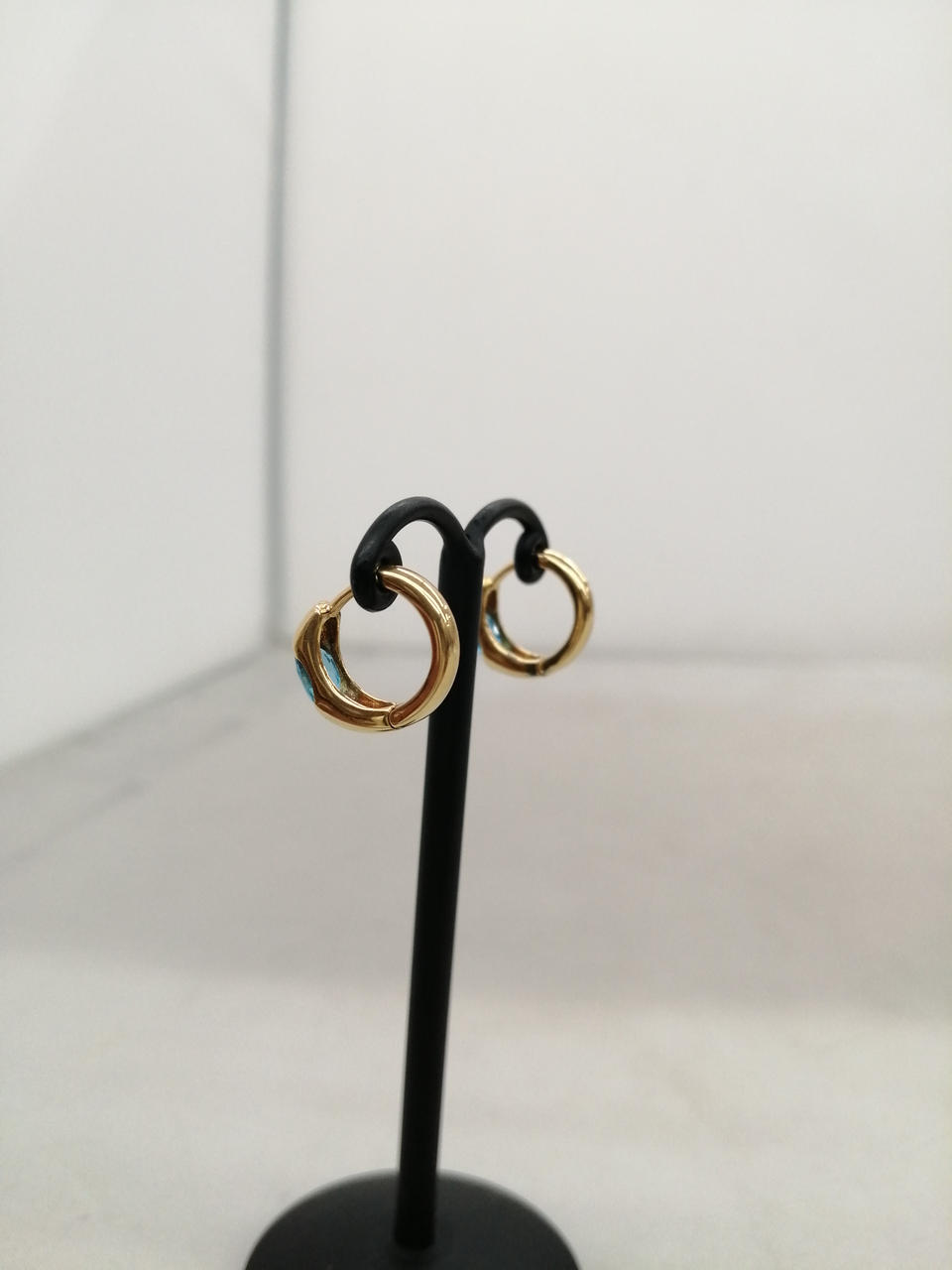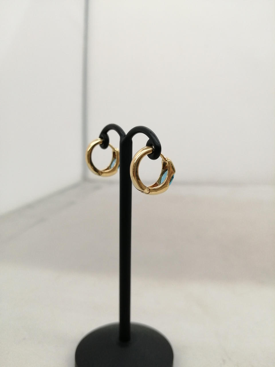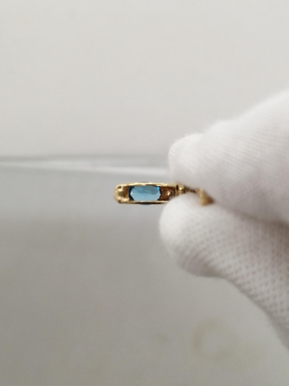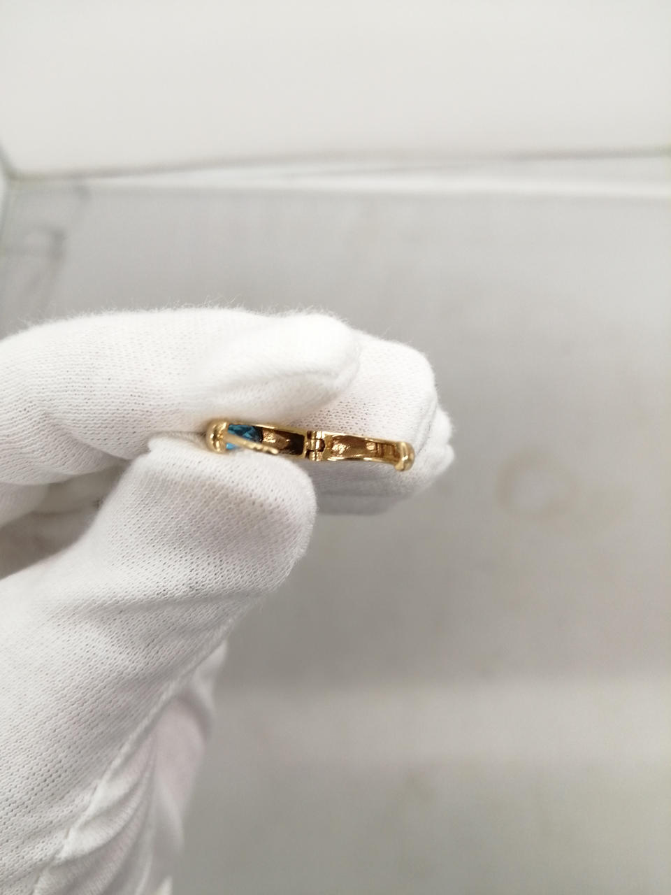 ブルーの石がはめ込まれた、素敵なピアスです