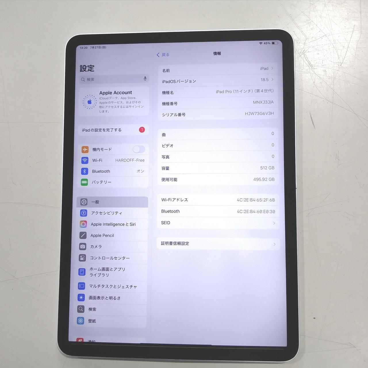 2022年発売のIPAD PRO 第4世代 11インチ 512GB。MNXJ3J/A、ワケあり、ジャンク品です。