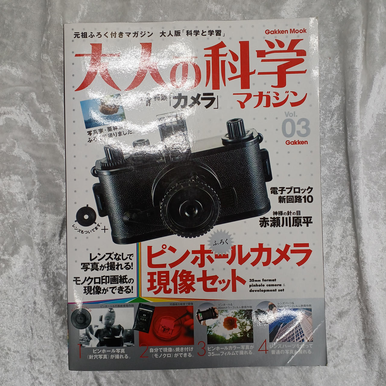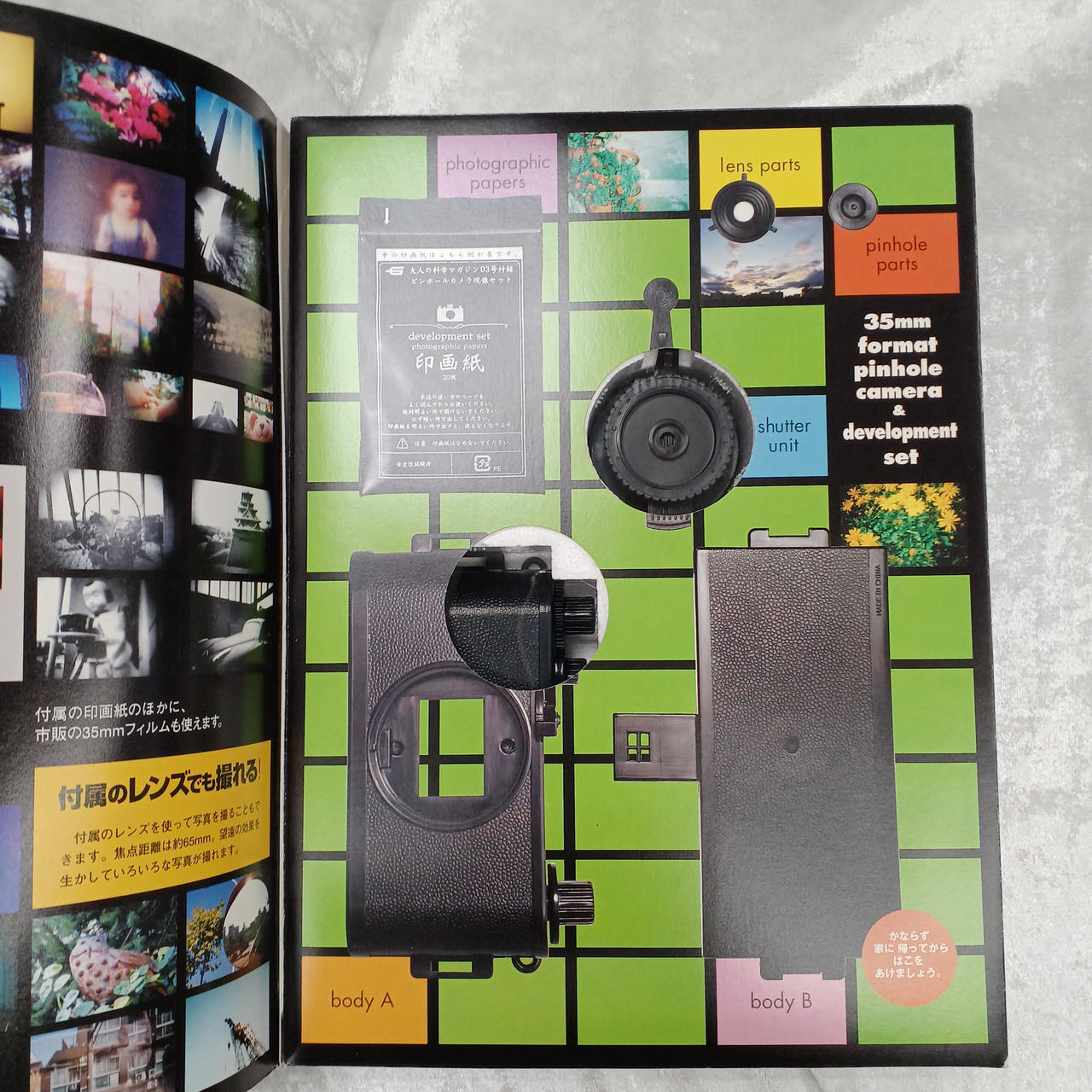 市販の35ミリフィルムも使えるので、ピンホール写 真を手軽に写すことができます。 |