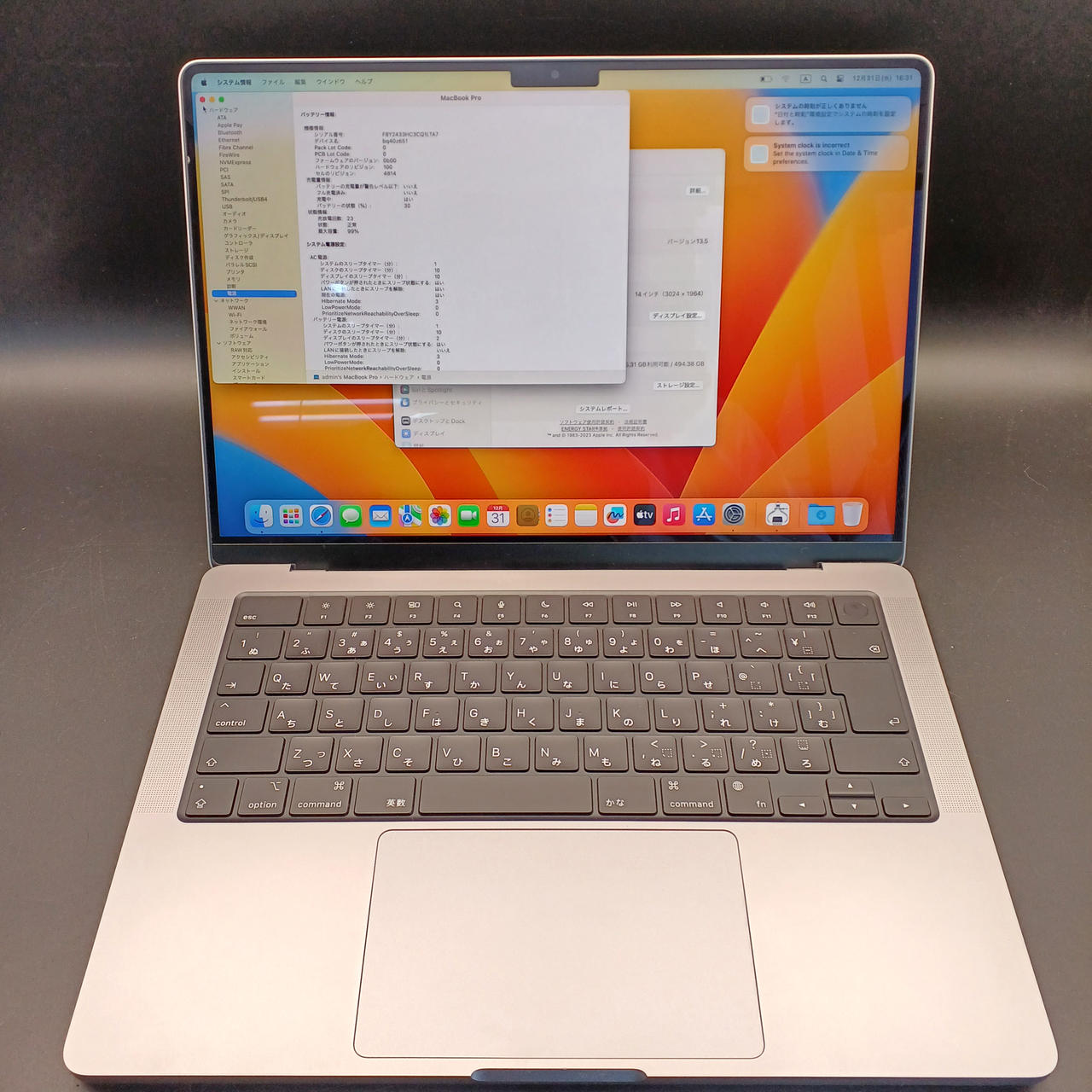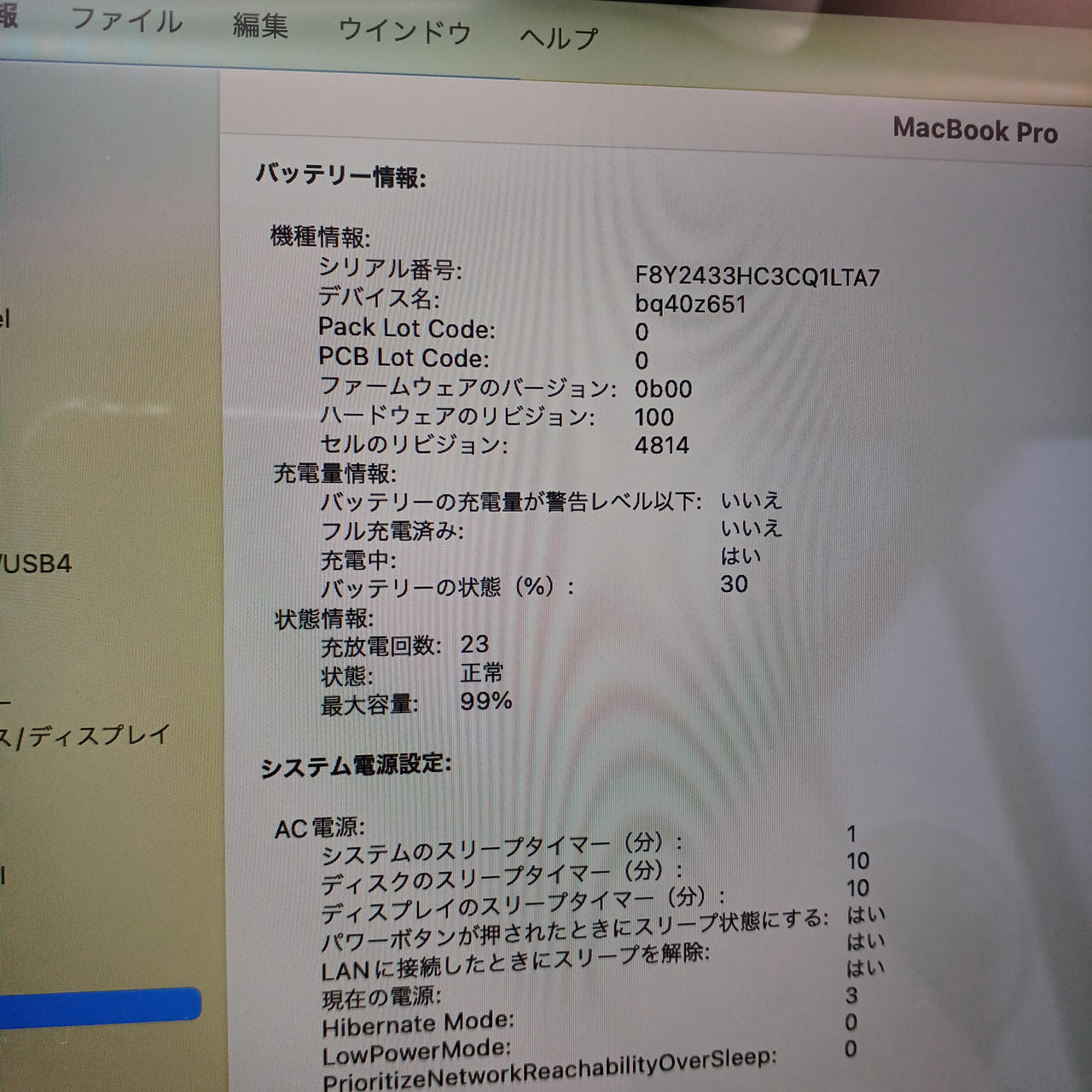 バッテリー最大容量:99% 充電回数:23 |