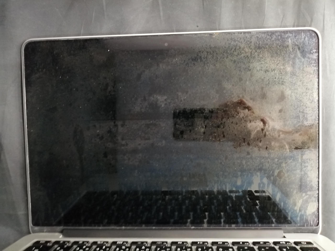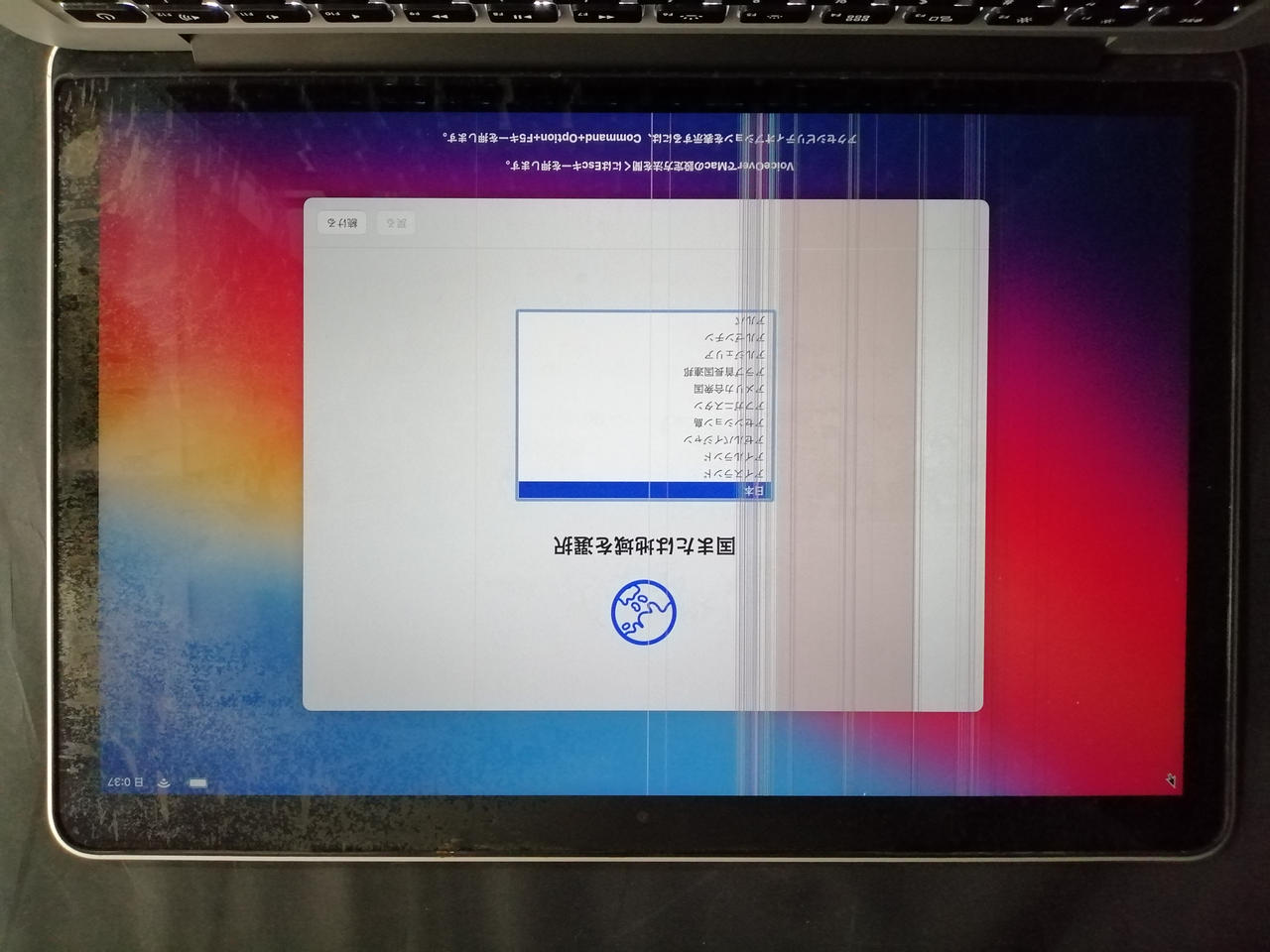 画面コーティング剥がれが前面にあり、縦線も入っています。 |