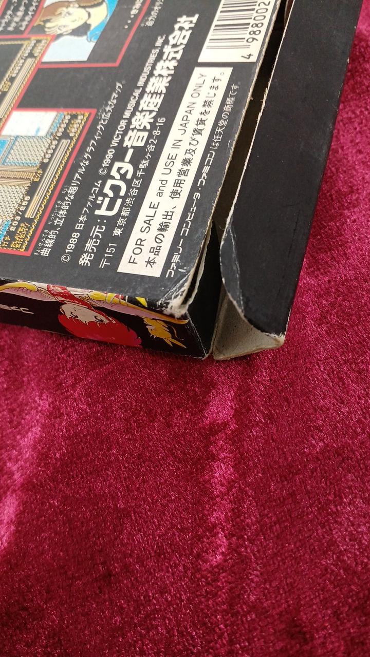 箱、説明書、日焼け、シワ、等のダメージあり。本体、ヨゴレ(シミ?)日焼けあり。
