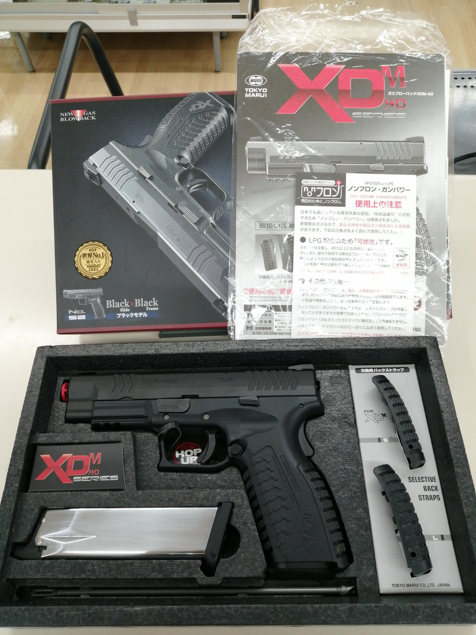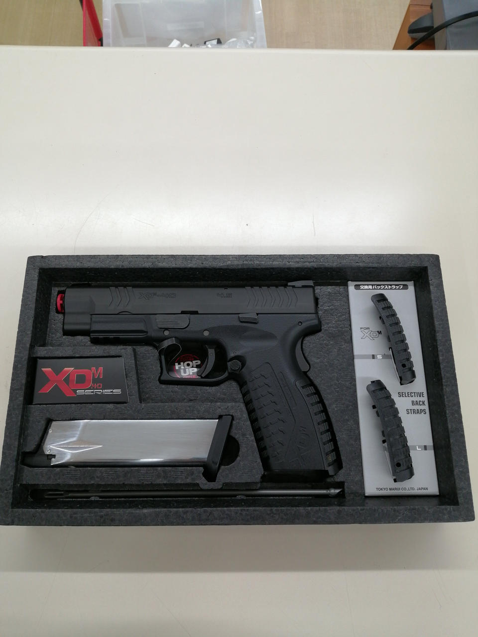 外箱、説明書、マガジン×1、バックストラップ(S/M/L) |