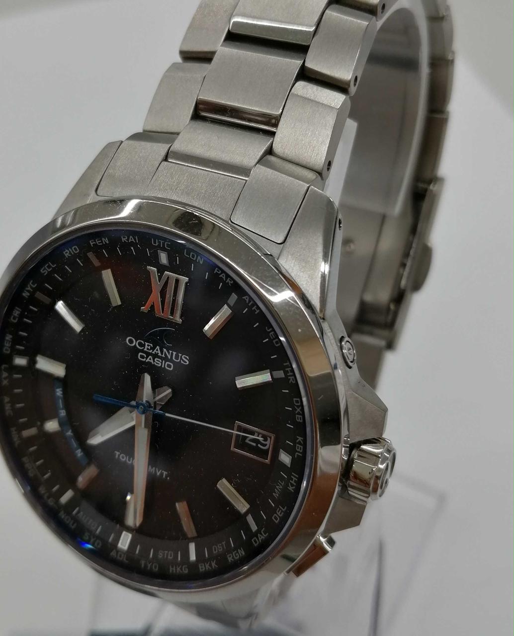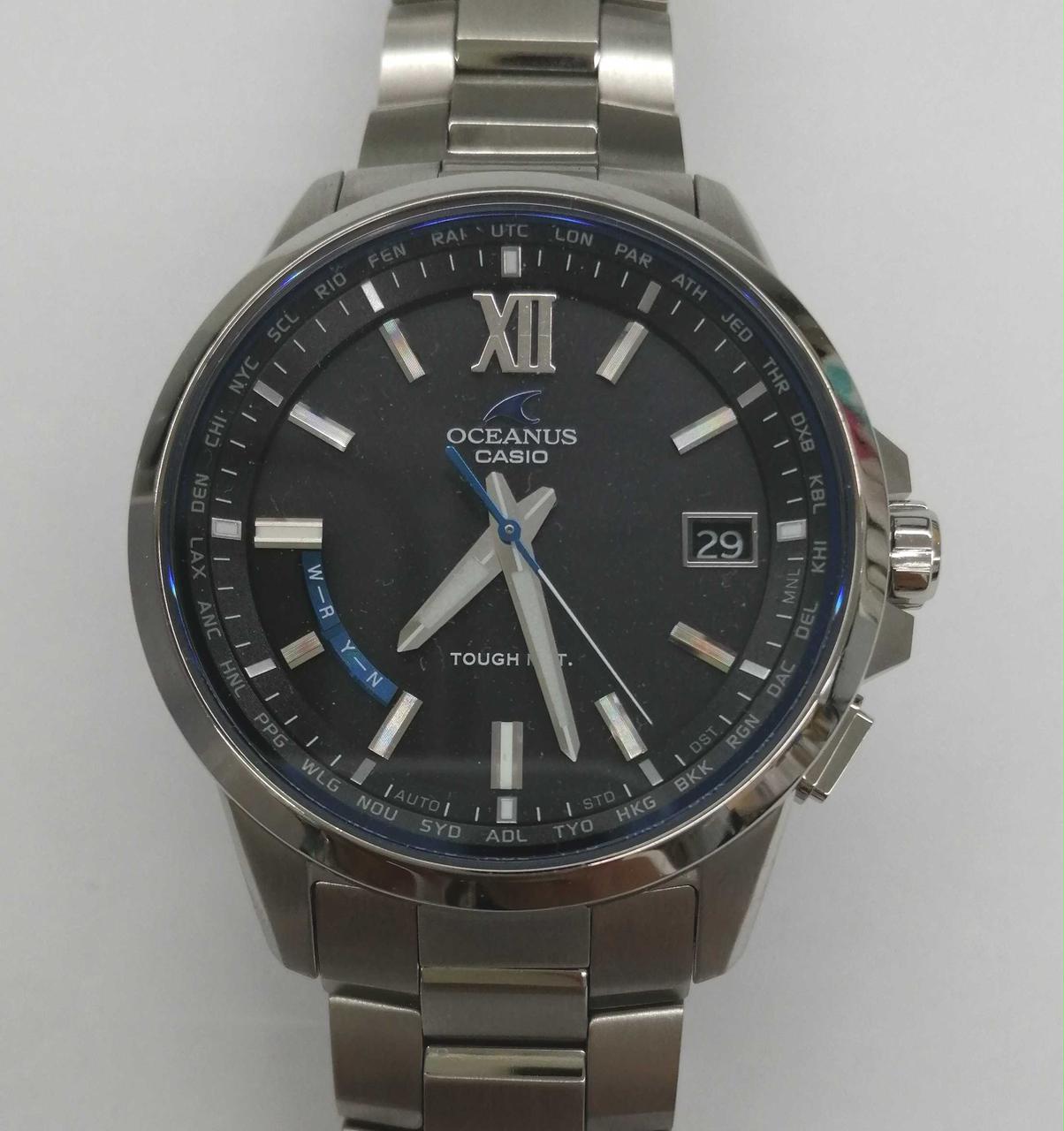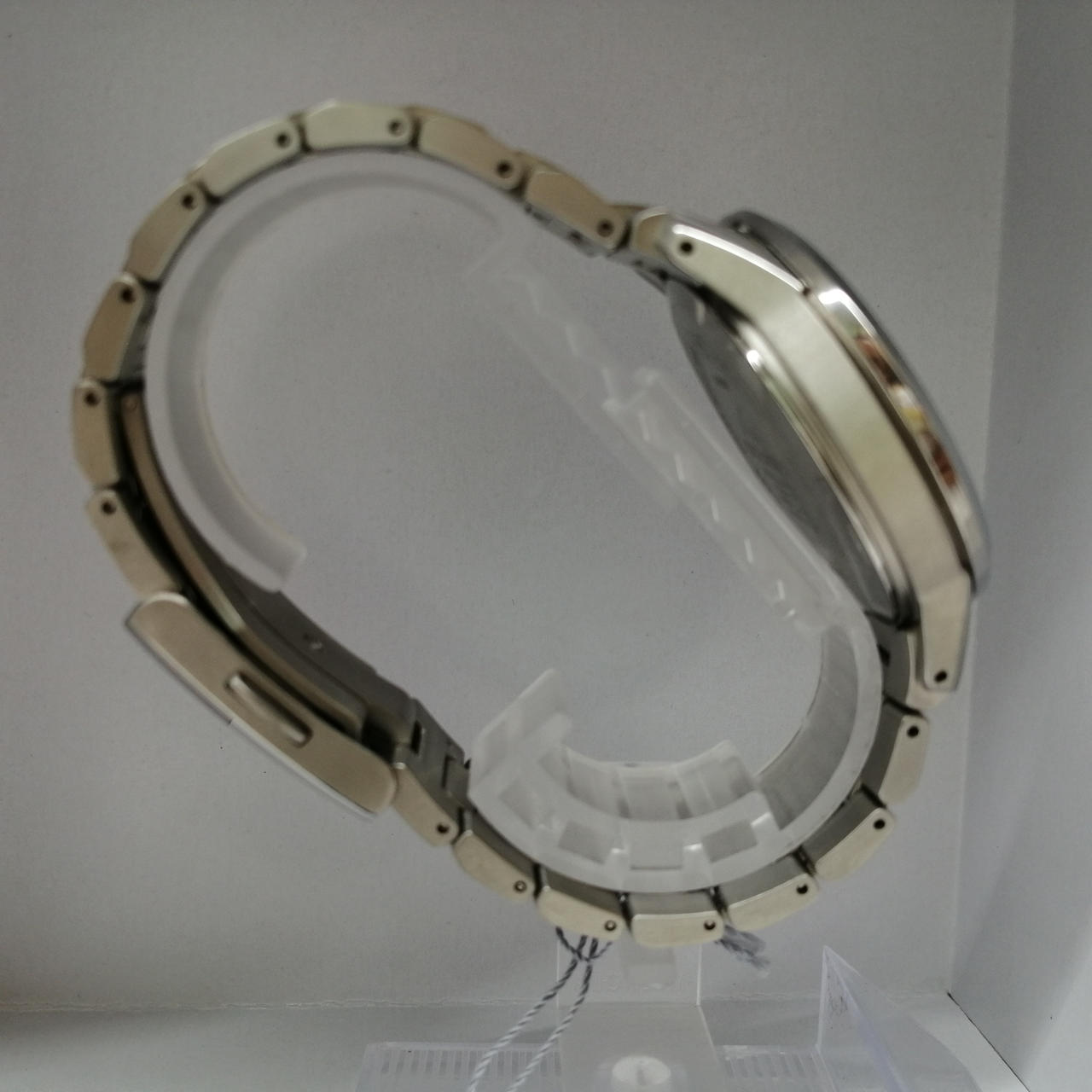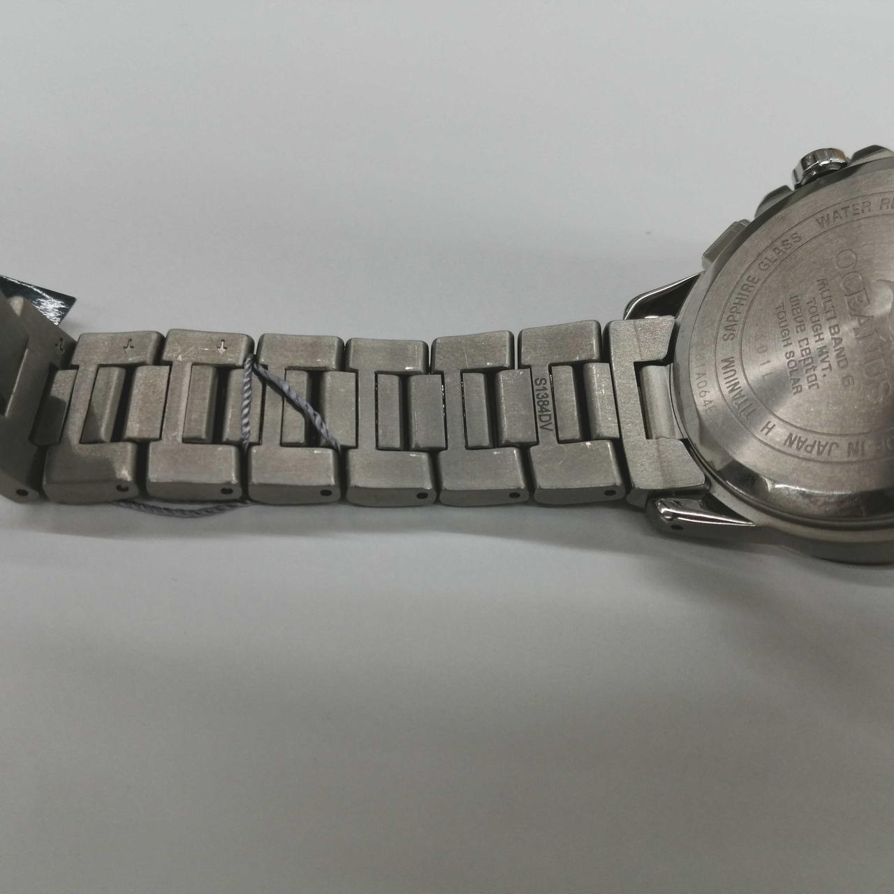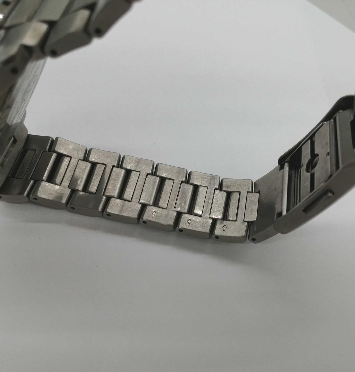 箱、説明書、予備コマ(2コマ)付属。ベゼル部12~2時の間に目立つ傷、ベルトや裏蓋に細かキズがあります。外箱に汚れ、内箱が完全に閉まりません。 |
