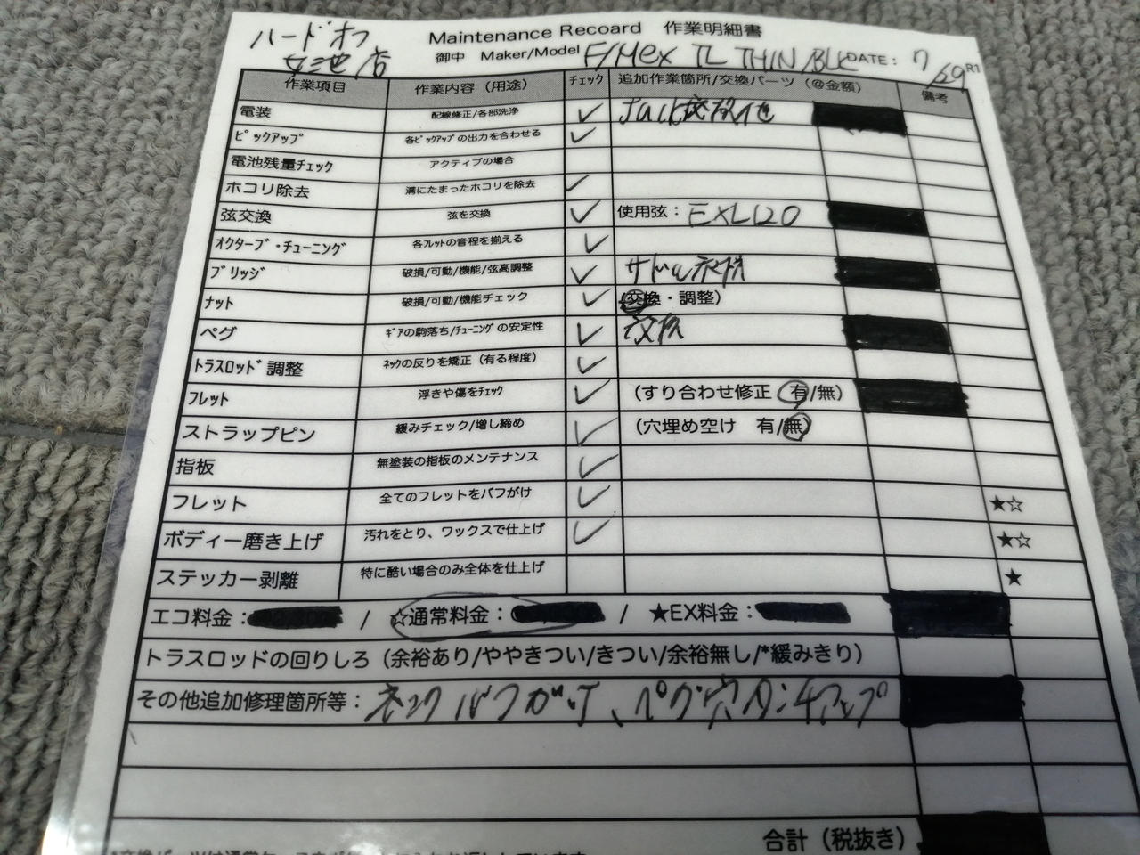 (株)インフィニティープロダクツ様にて、調整&メンテナンス済みです。作業内容は別紙の確認をお願いします。 |