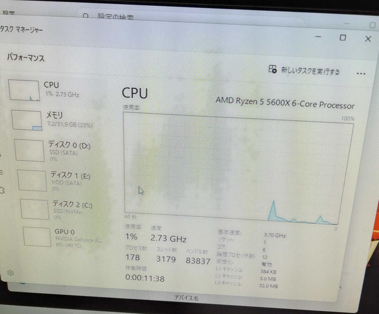 OS:WINDOWS11HOME CPU:AMD RYZEN5 5600X@3.70GHZ 6コア/12スレッド |