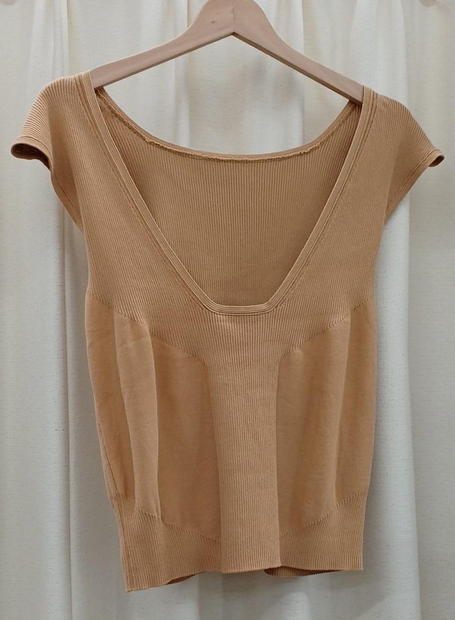 SALVATORE FERRAGAMOのノースリーブニットです。タグ付きの未使用品ですが、後ろ身頃に小さなツレがあります。それ以外に問題は無くご着用して頂けるお品です。 |