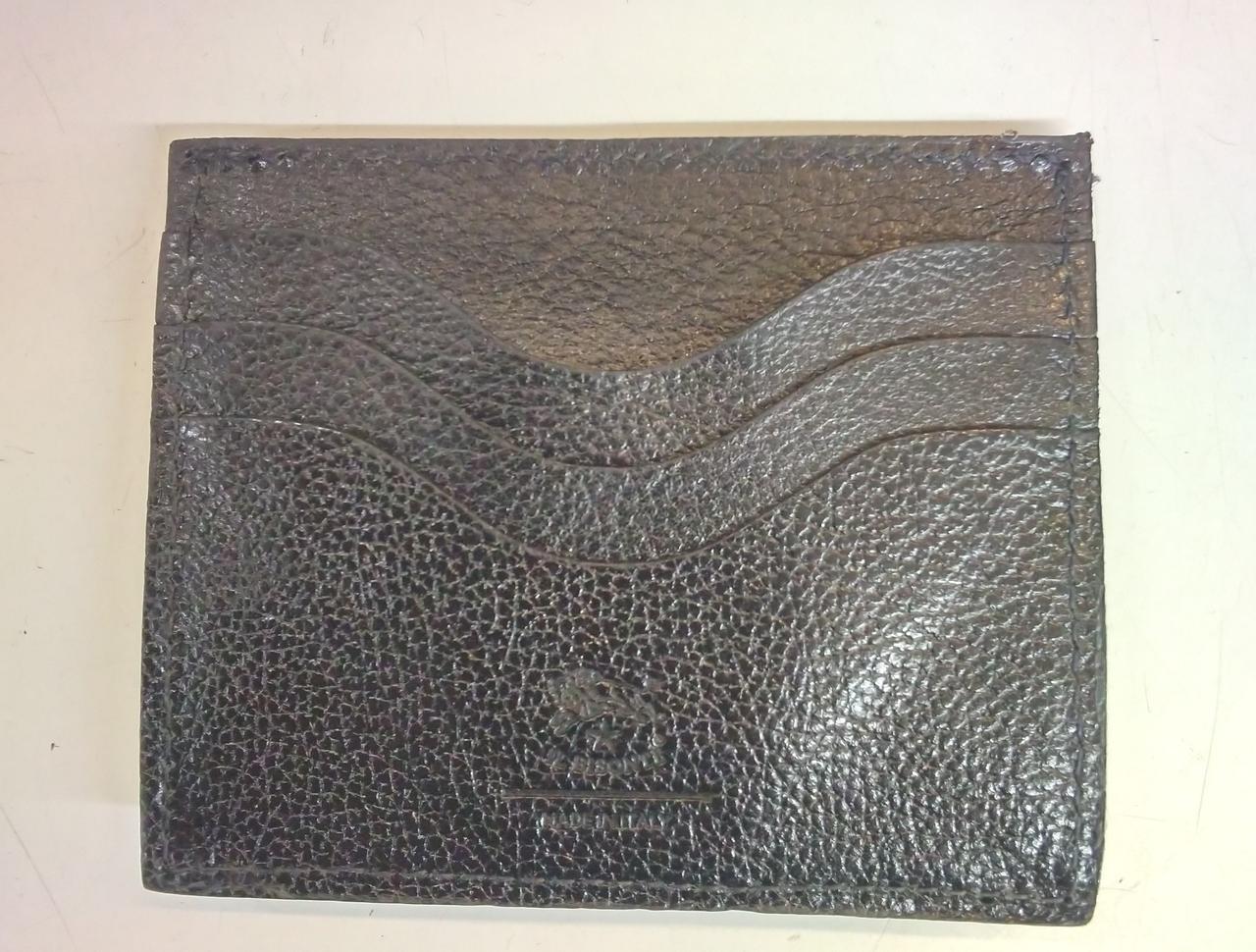 両面にブランドロゴを型押ししたスタイリッシュなデザイン。立体的な小銭入れとカード収納のみのミニマルなスタイルのお品物です