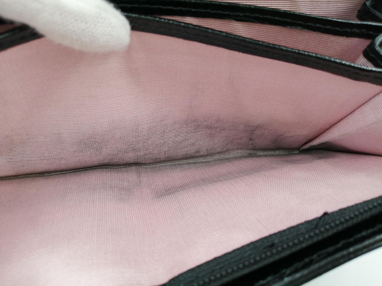 中の小銭入れ、お札入れに黒い汚れ有り