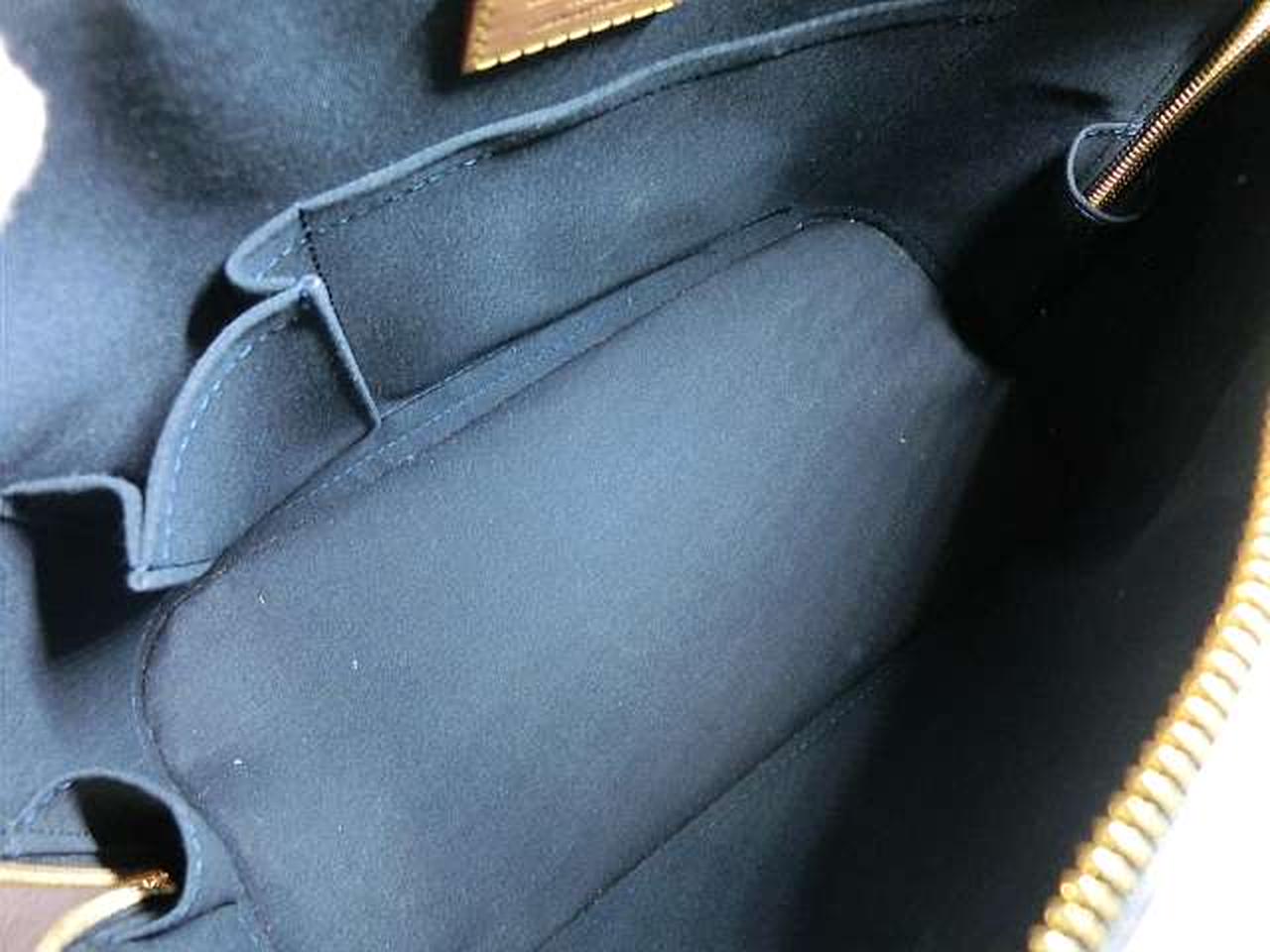 光沢のある表面に型押しされたロゴがエレガントなデザインのハンドバッグ。伝統と革新が見事に調和された「アルマPM」はデイリーユースに最適なサイズ。底ビスも付いていて置いた時の安定性も抜群。 |