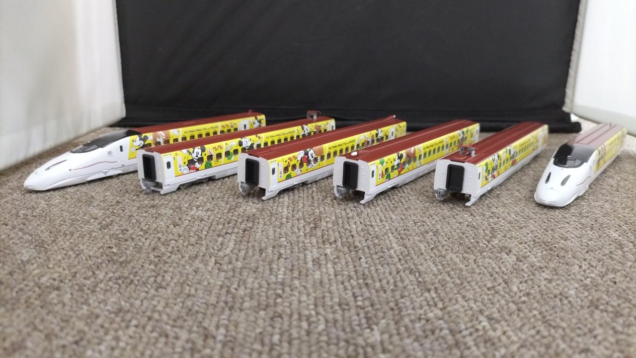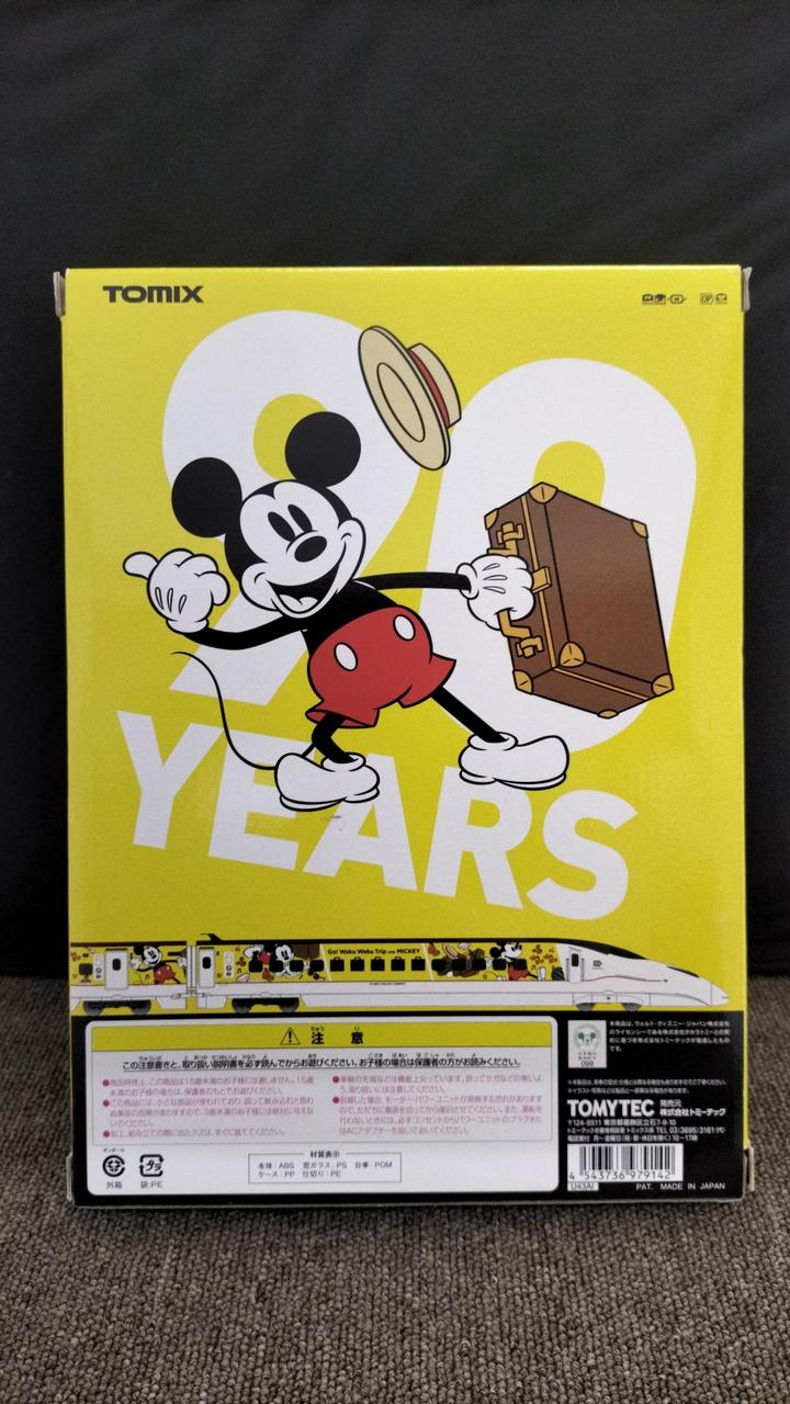 東京ディズニーランド開業時からのスポンサーであるトミーのNゲージ部門だからこそ出せた製品です。ディズニーリゾートの最寄り線の京葉線でも走っていない、貴重な一品です。現在はラッピング解除されていますが、運行中は博多駅で500系新幹線ハローキティラッピングとも並んだこともある、夢の共演も果たしています。