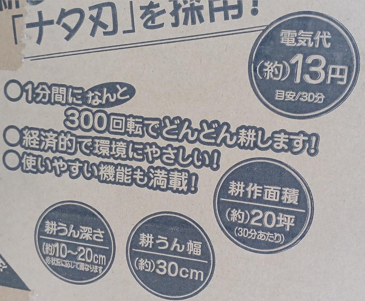 【耕うん幅】約300mm、【耕うん深】約100mm |
