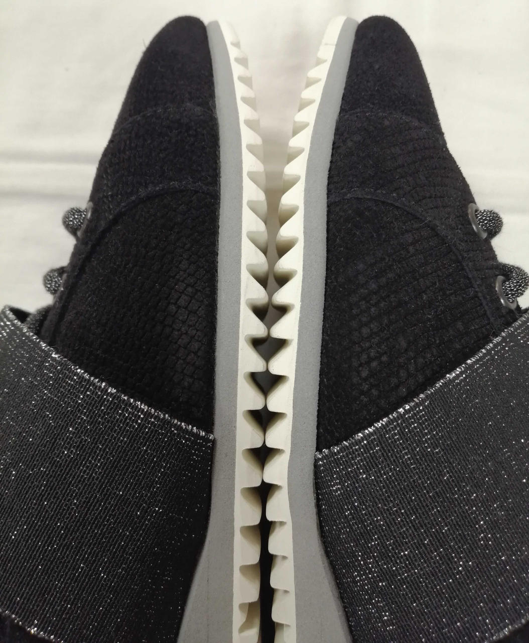 細身シルエットでラメ使いが大人カジュアルのコーディネートを演出してくれます。パンチンングで通気性◎ |