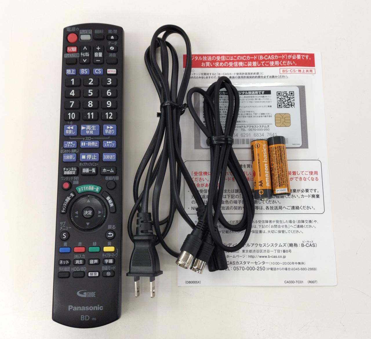 電源ケーブル、接続ケーブル、リモコン、B-CASカード付属。 |
