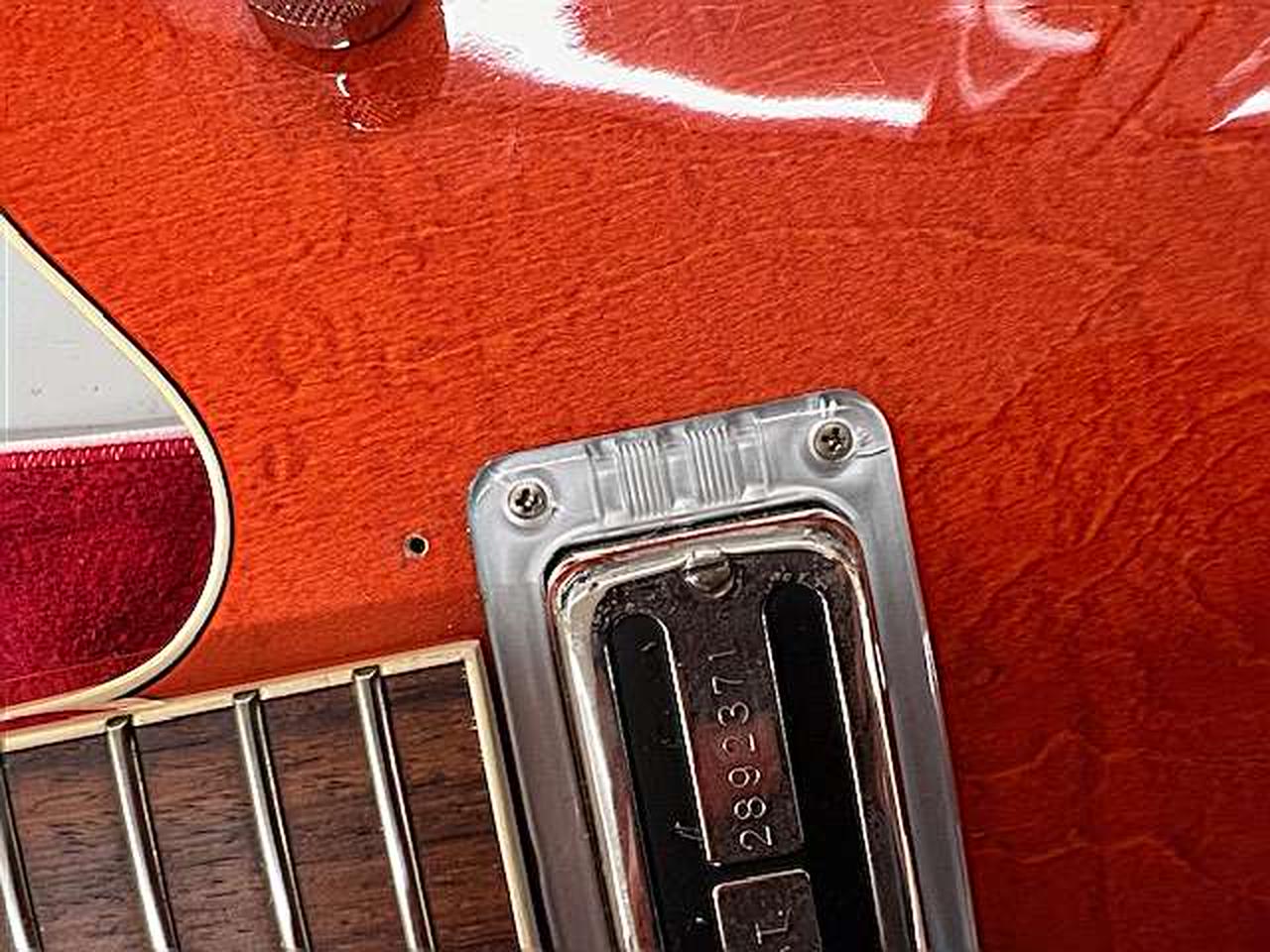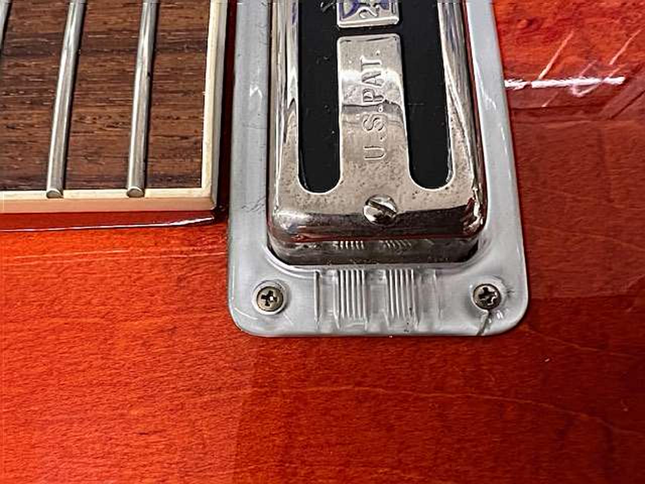 ロッド:余裕あり、ネック:ストレート、ボディトップにサインがかかれており、エスカッションにはヒビがございます。また、3弦ブリッジ駒の調整用ネジが欠品しております。 |