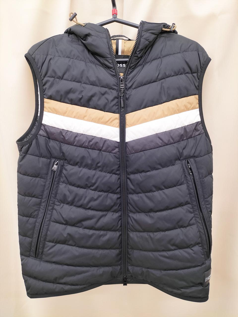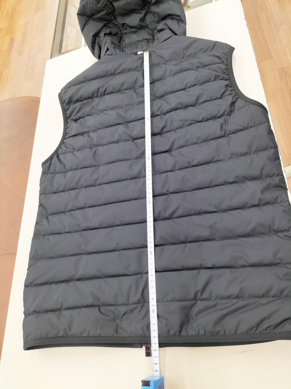 撥水機能を備えた生地で仕立てられたフード付きベストです |
