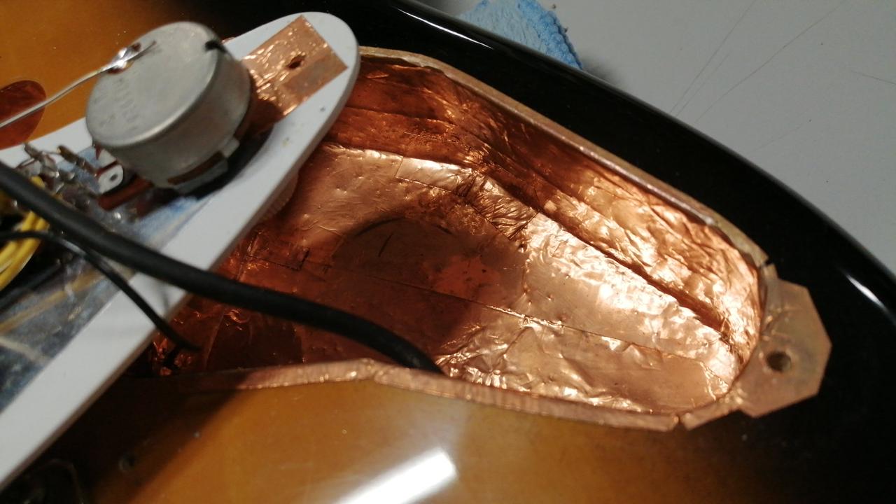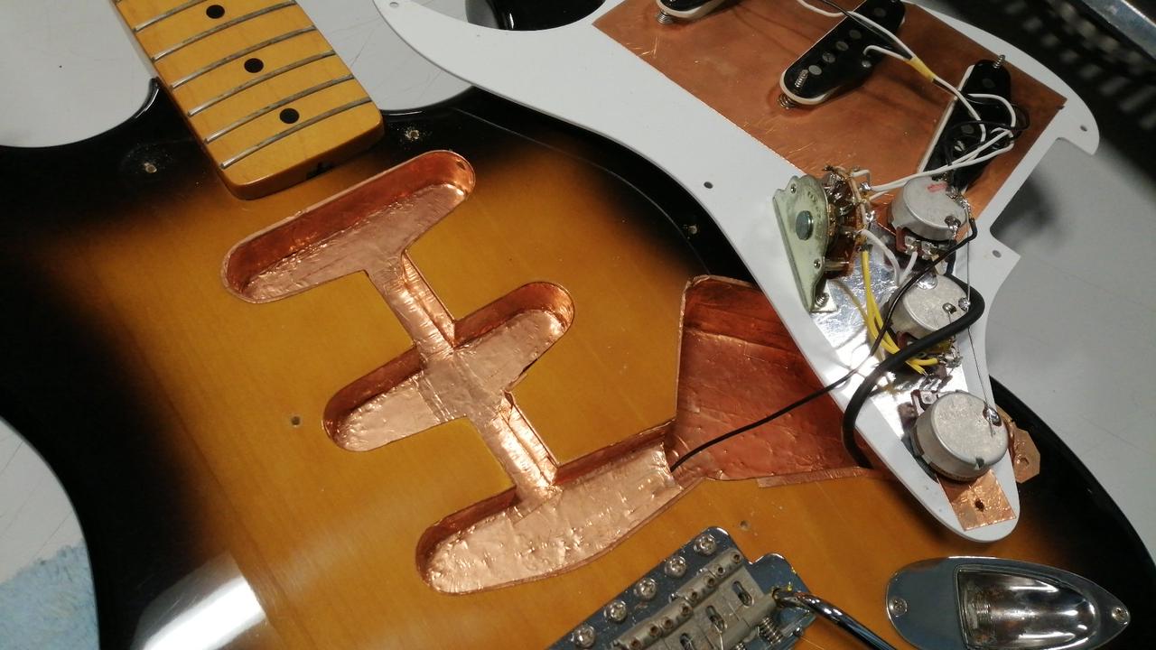 キャビティ内に大変丁寧な施工による銅箔テープのシールディング処理が施されており、ノイズ対策もバッチリです! |