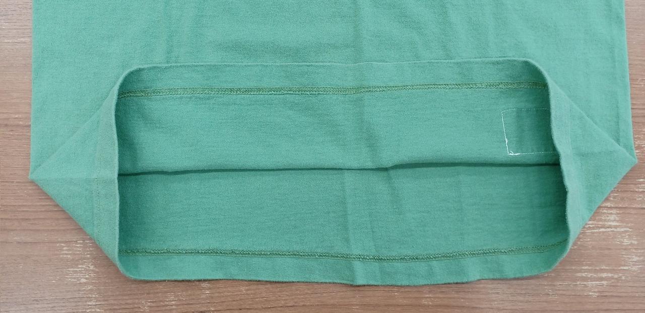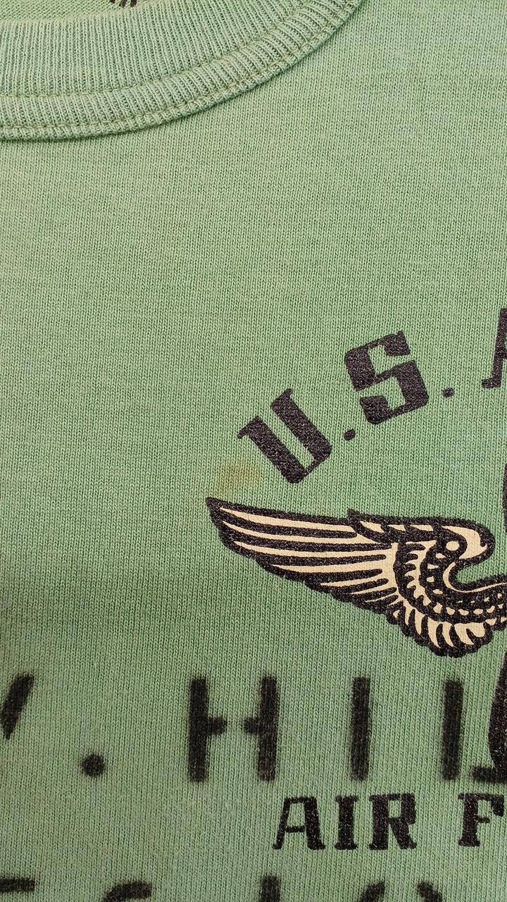 左側のロゴと袖部分に汚れがあり、全体的に色褪せがあります。 |
