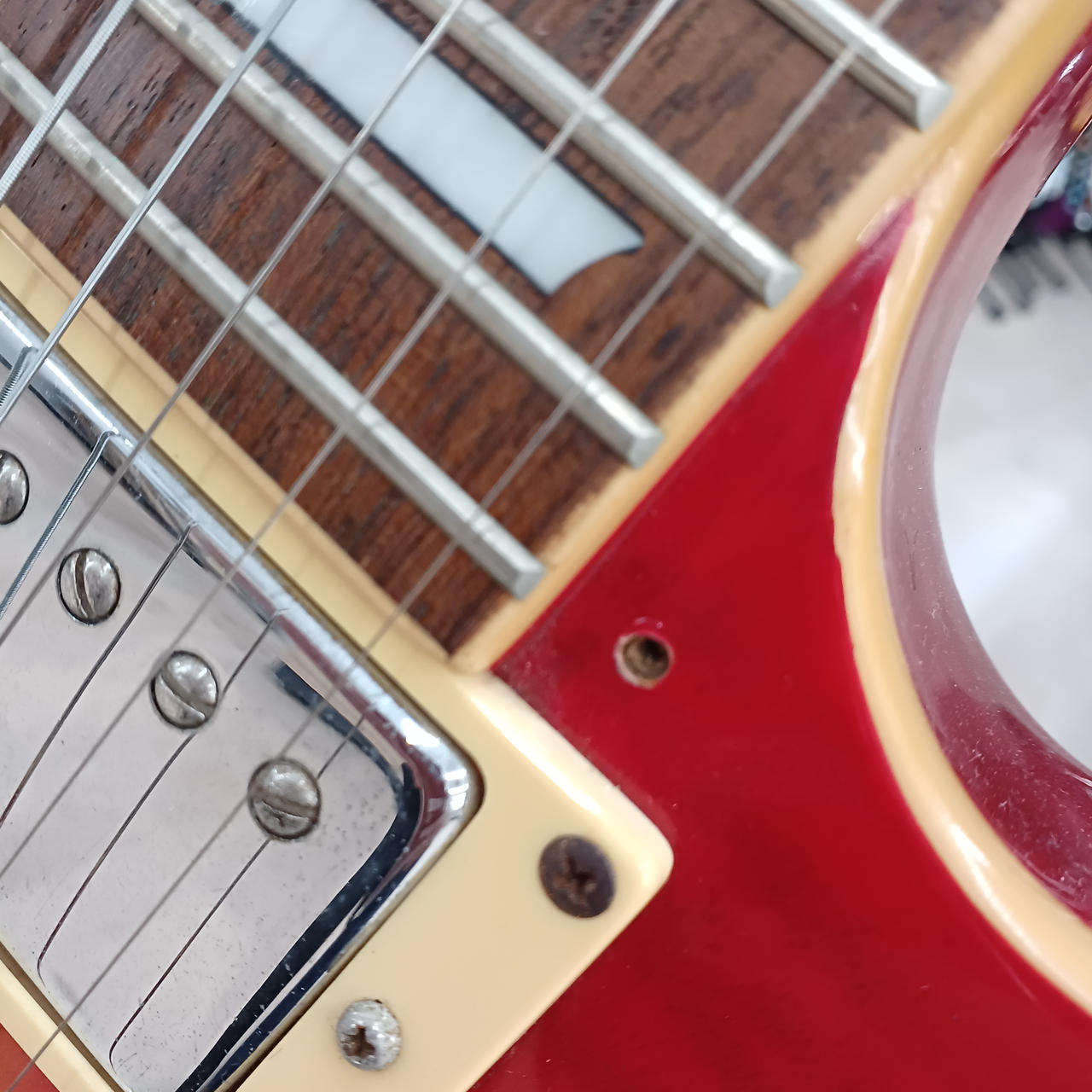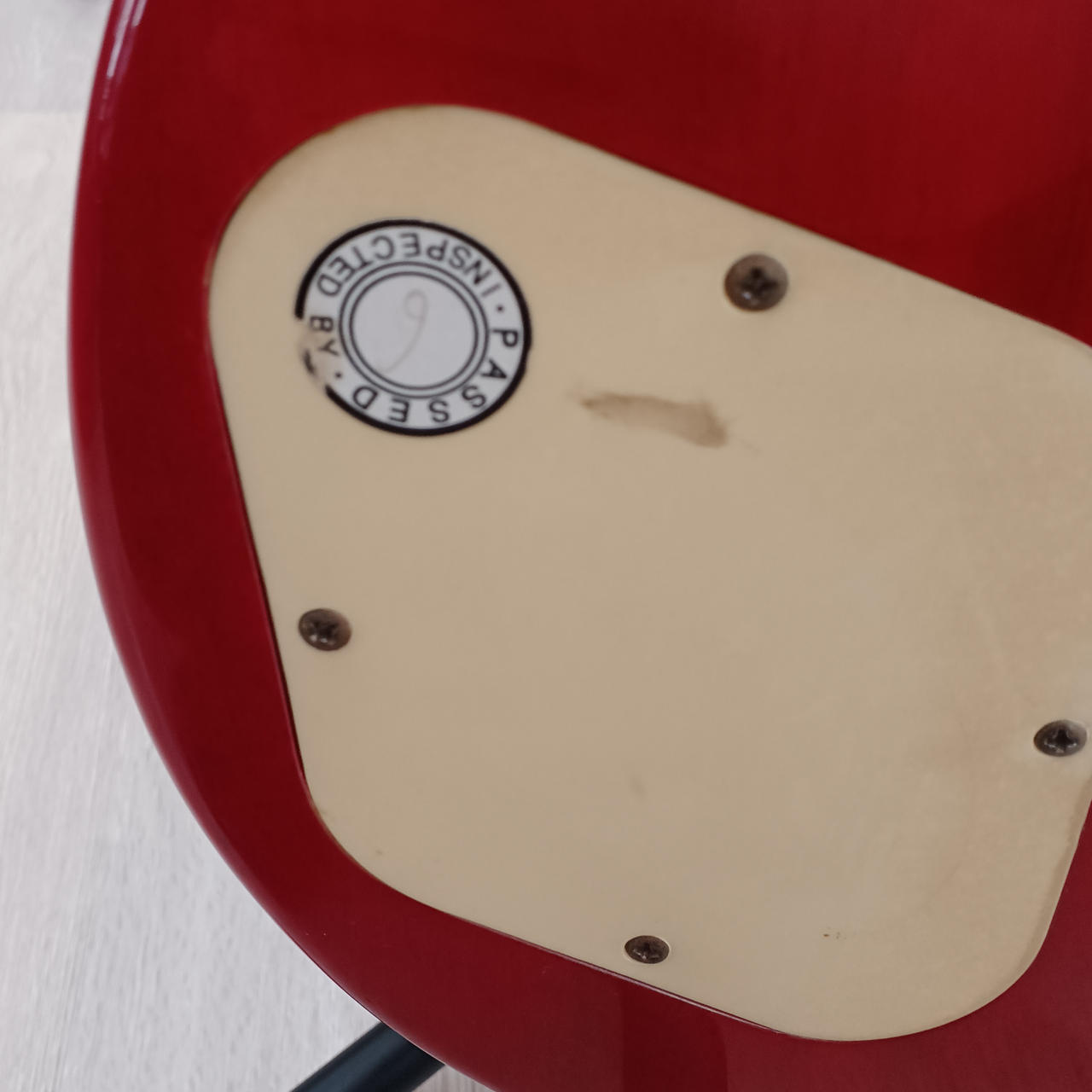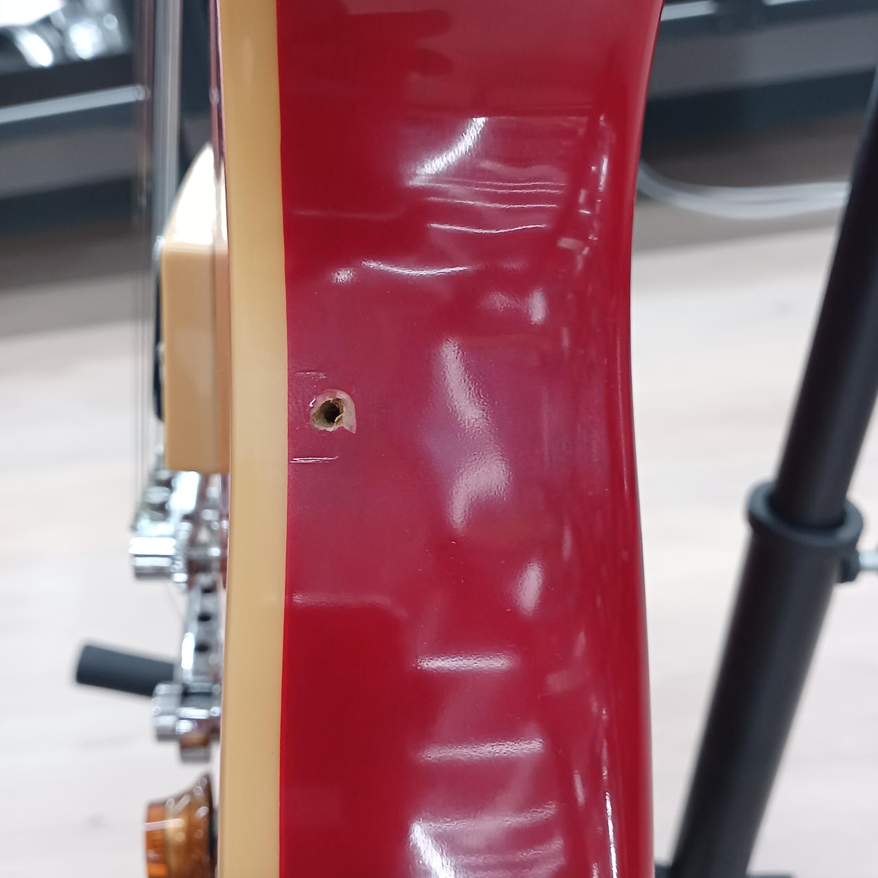 ピックガード外されており、本来の固定箇所に穴が開いています。(写真9.10枚目参照) |