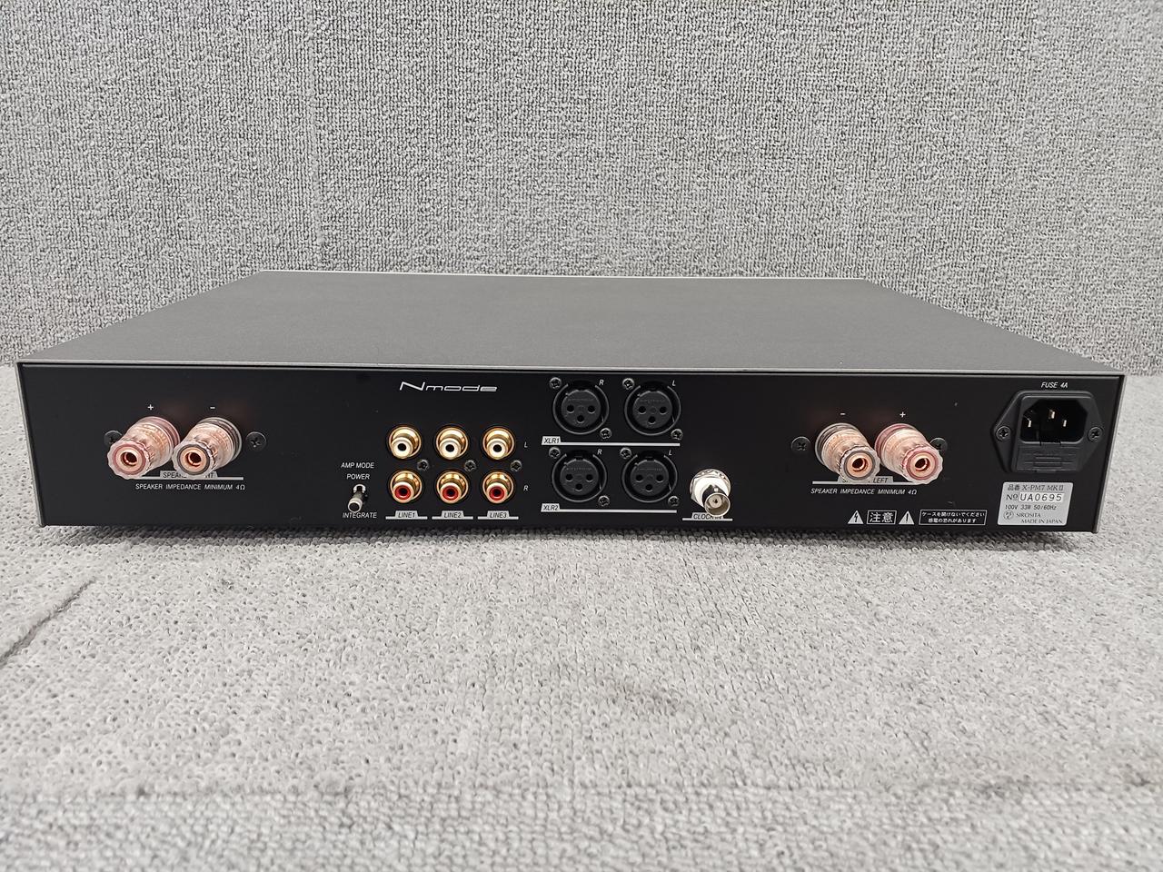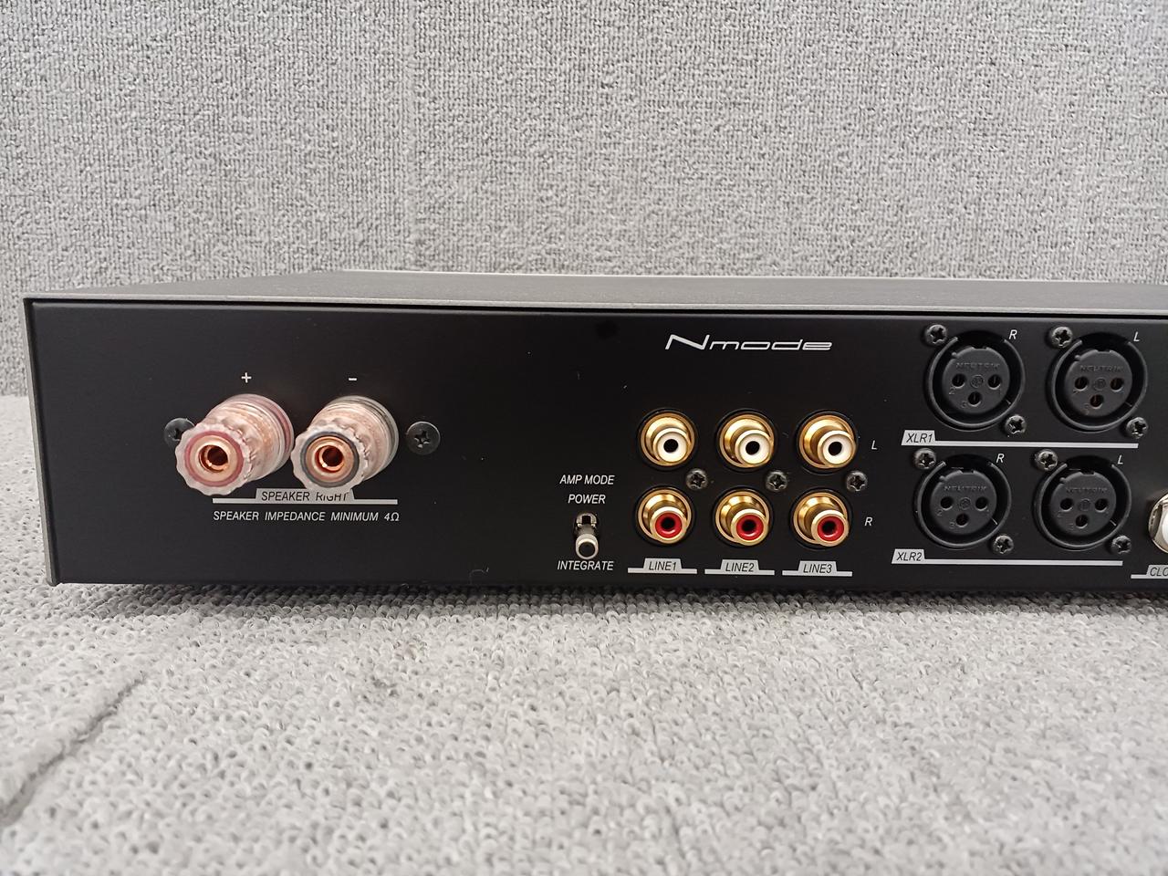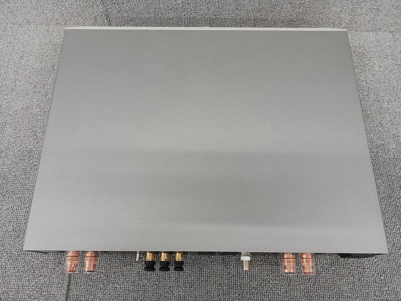 残留ノイズレベルは従来モデルの10分の1以下で、背面にパワーアンプ化への切り替えスイッチを搭載 |