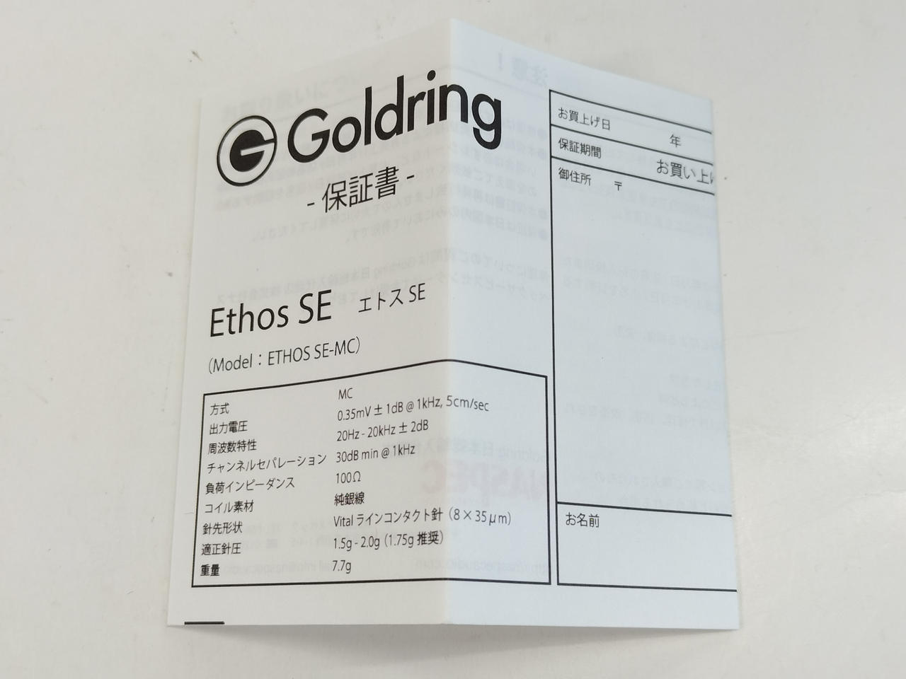 型式:MC型 再生周波数:10~32,000Hz ±2dB 針圧:1.5~2.0g(1.75g推奨) 重量:8.5g |