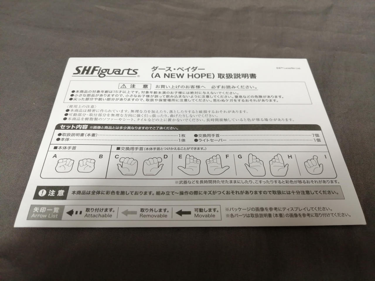 説明書、交換用手首一式、ライトセーバー |