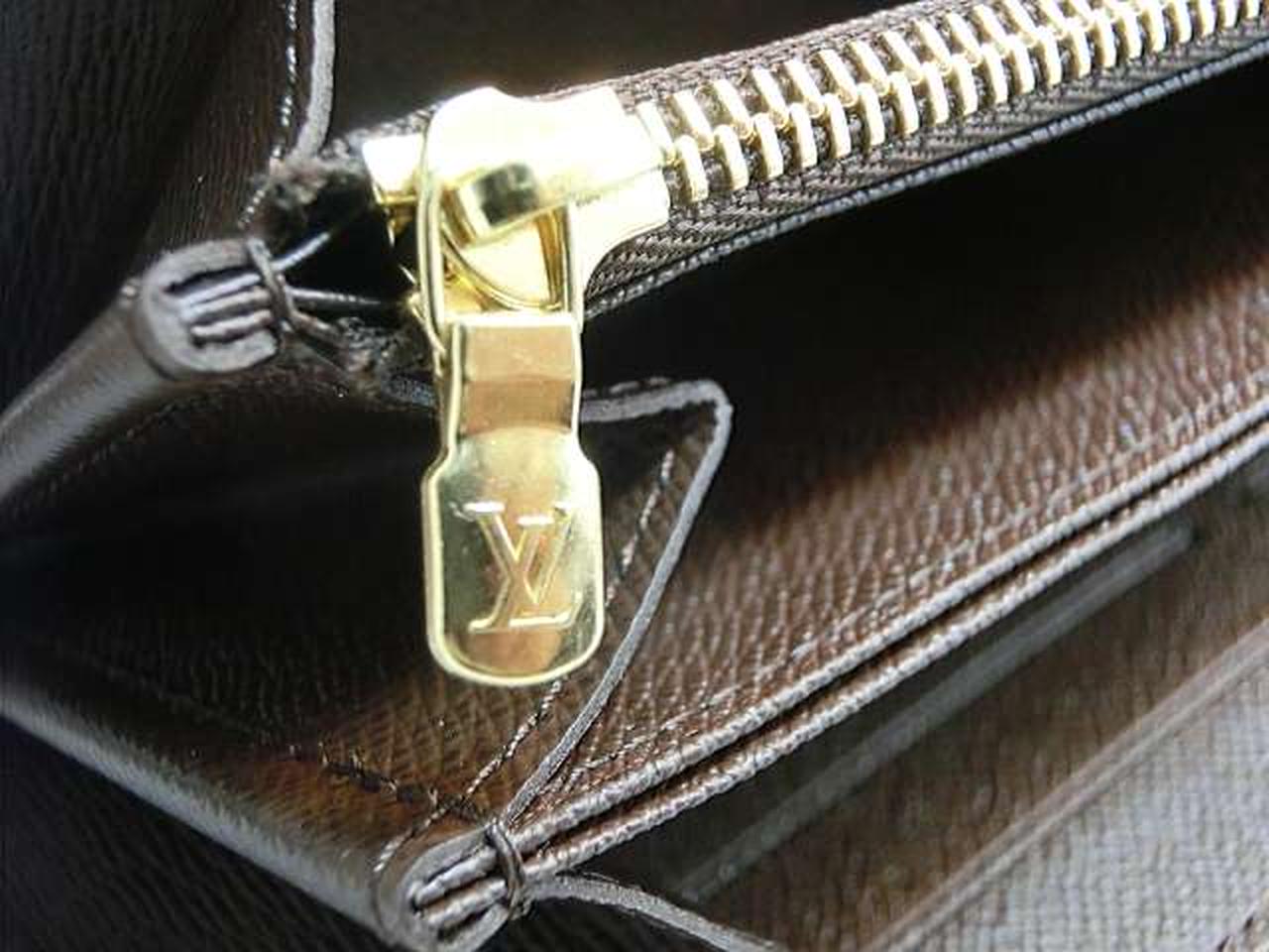 落ち着いた優美さと幾何学的なモチーフが魅力的なダミエラインの、複数のカードポケットやコンパートメントが付いた機能性に優れたファスナー式の財布。 |