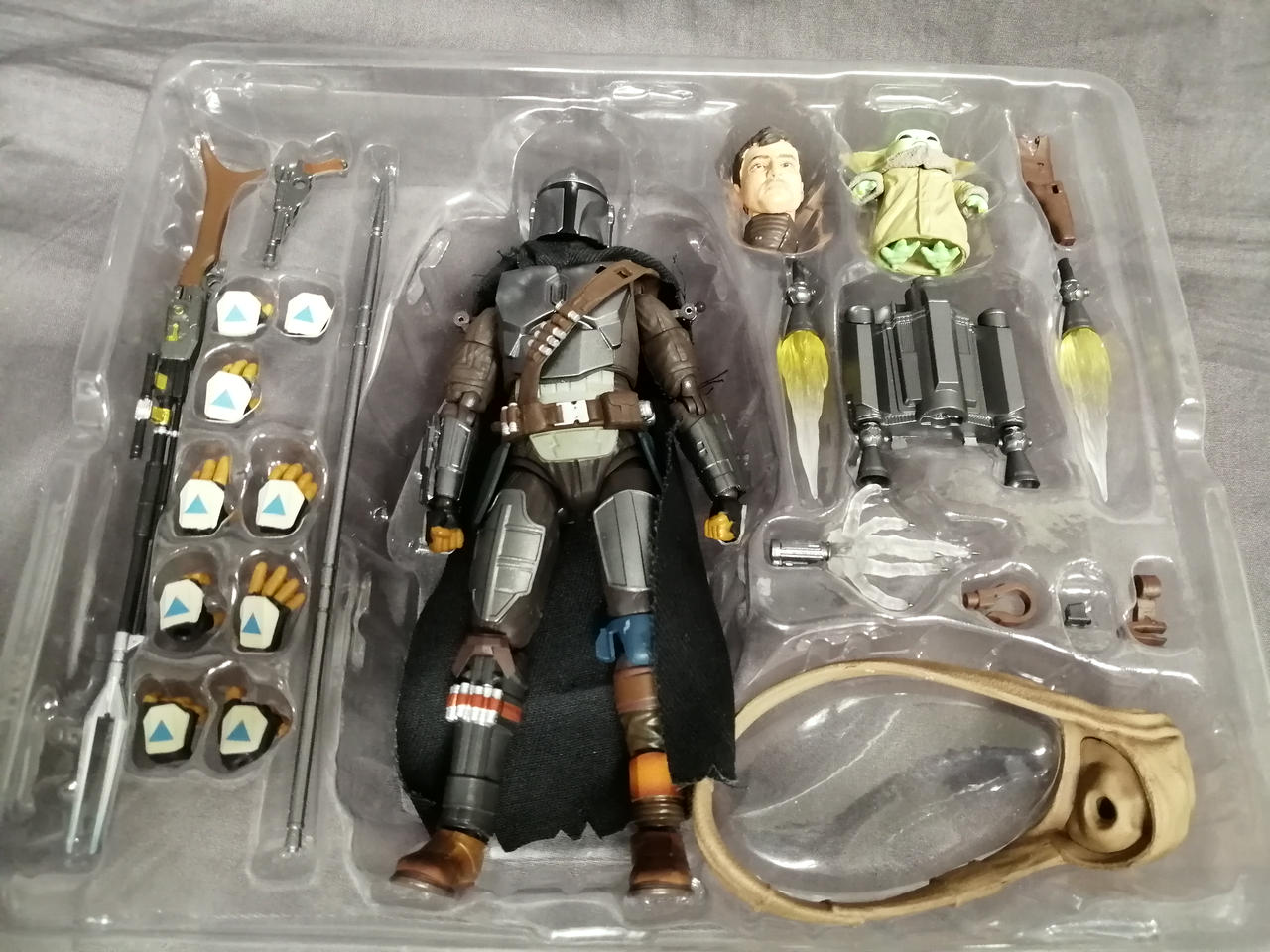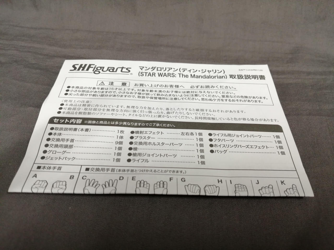 左肩関節破損、固定できません。ディン・ジャリン頭部パーツが外れやすいです。箱に傷みあり。 |