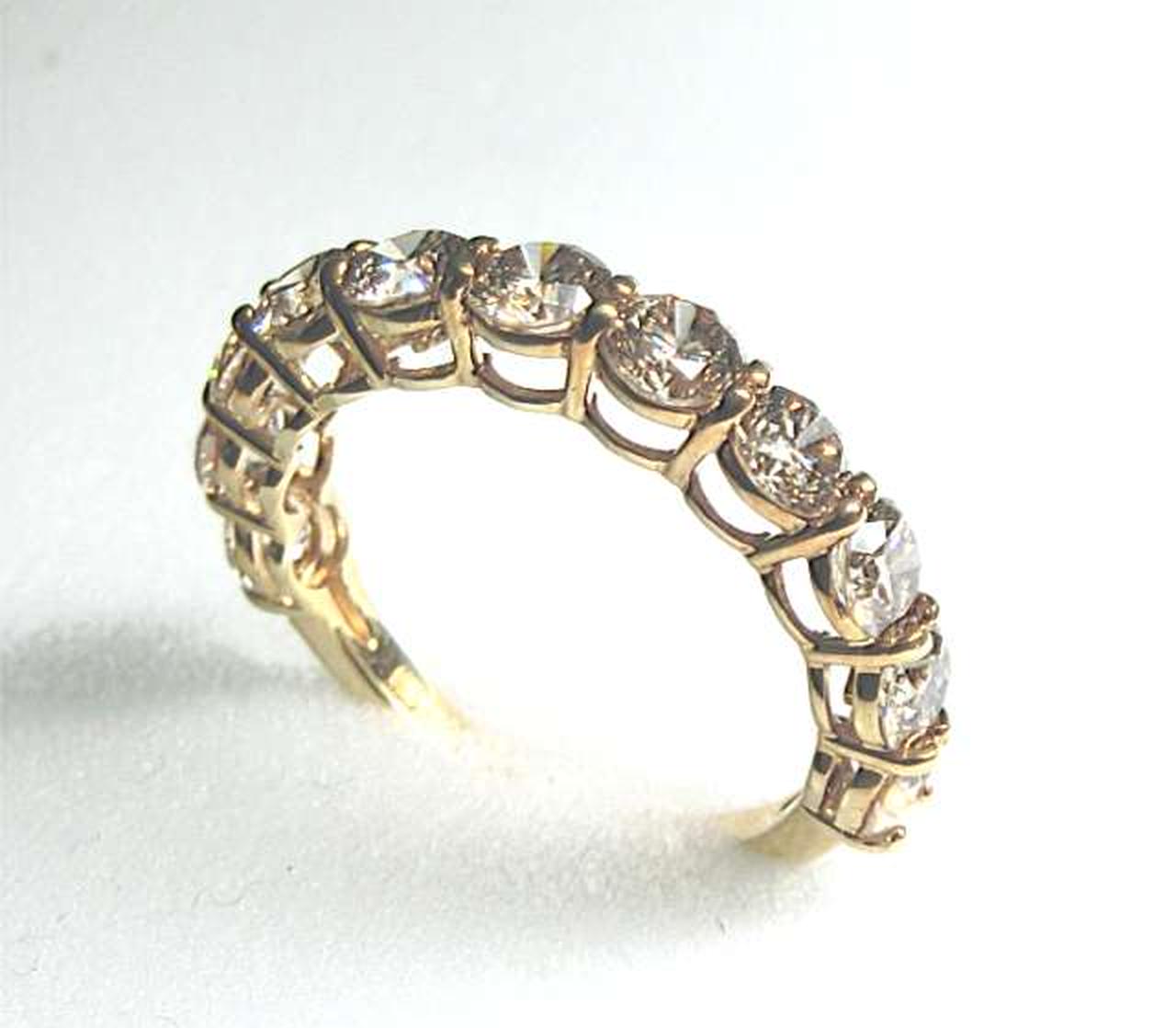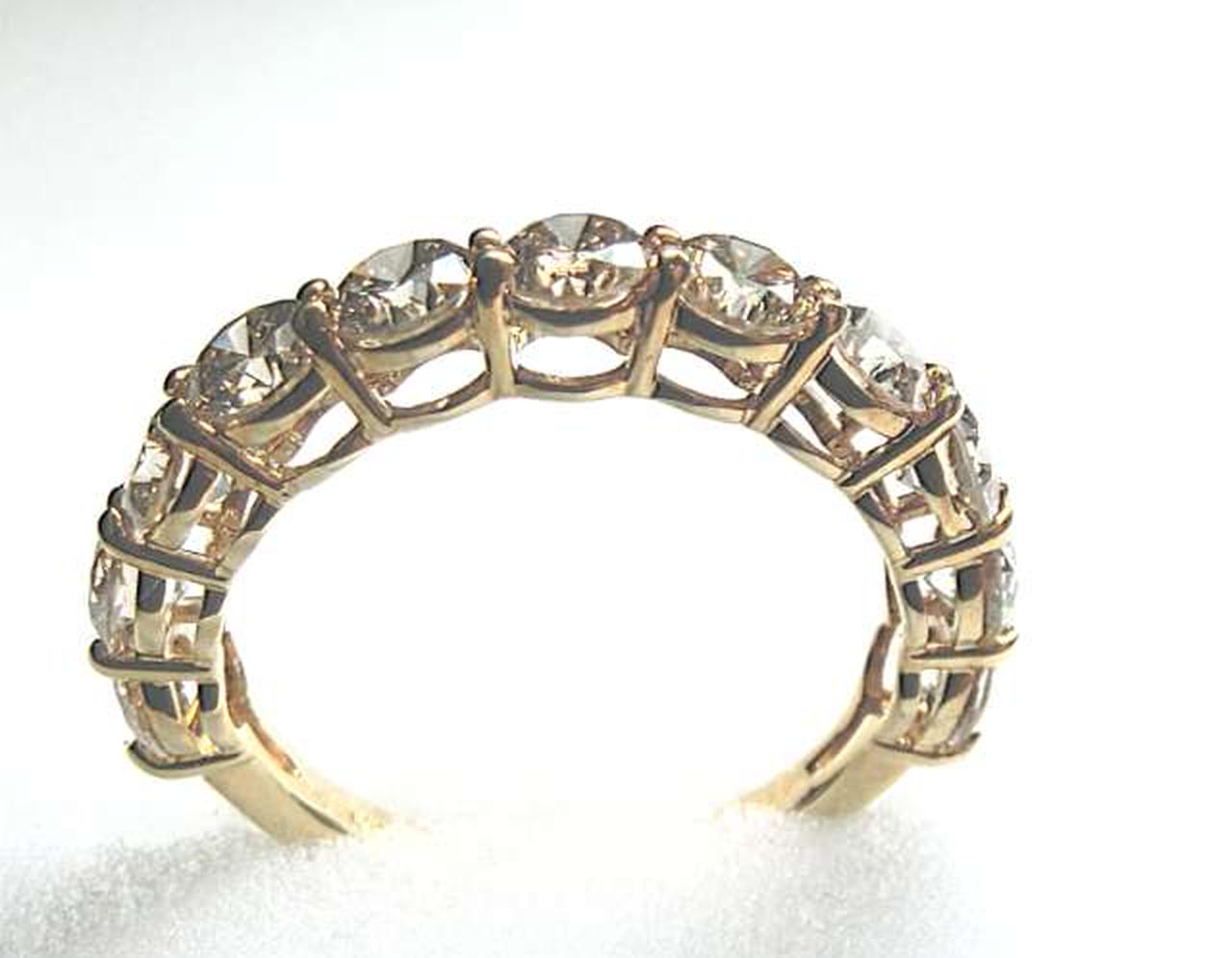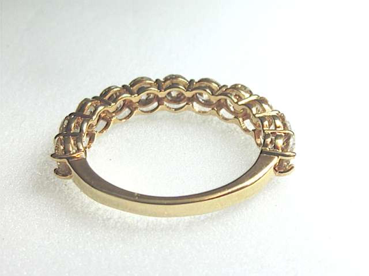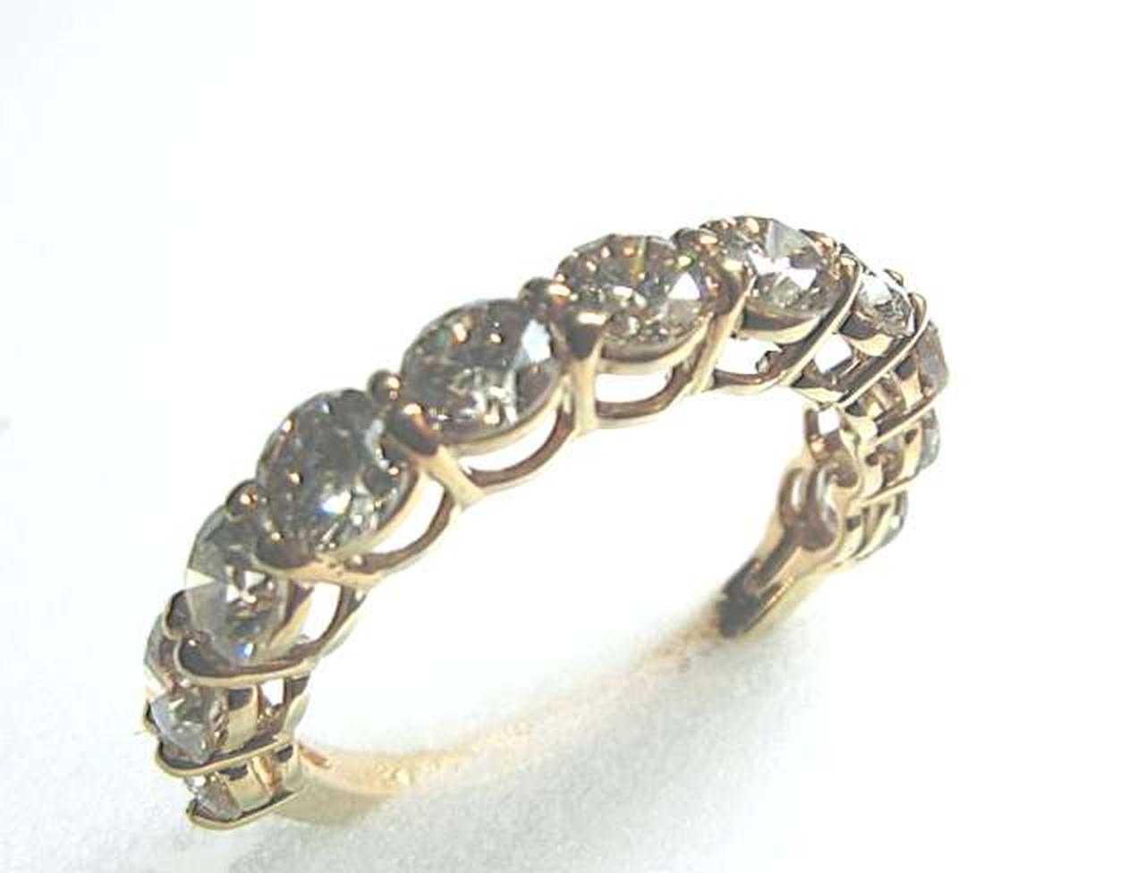 厳選された美しいダイヤモンドを11石セット。トータル2カラットの高級感溢れるエタニティリングに仕上がっています。大粒のダイヤ一粒一粒を、4本の爪で留めたベーシックなデザイン。大切なダイアモンドをしっかり押さえ、キラキラとした輝きがお楽しみ頂けます。 |