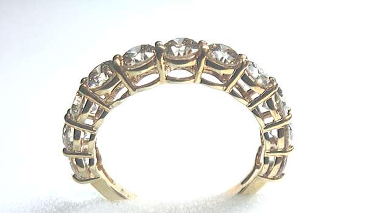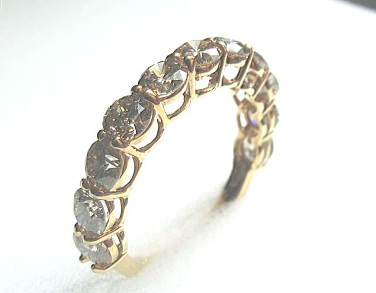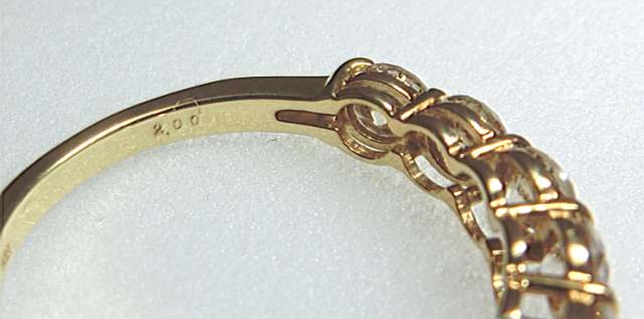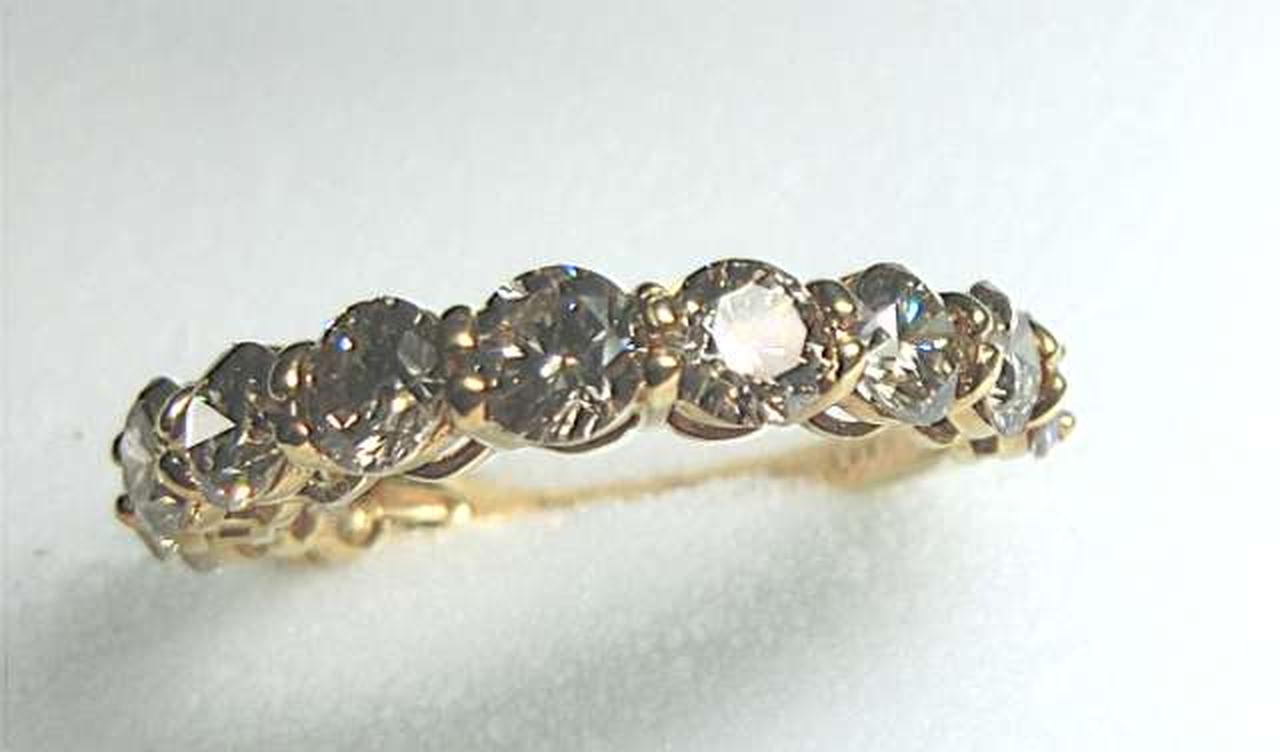 厳選された美しいダイヤモンドを11石セット。トータル2カラットの高級感溢れるエタニティリングに仕上がっています。大粒のダイヤ一粒一粒を、4本の爪で留めたベーシックなデザイン。大切なダイアモンドをしっかり押さえ、キラキラとした輝きがお楽しみ頂けます。 |
