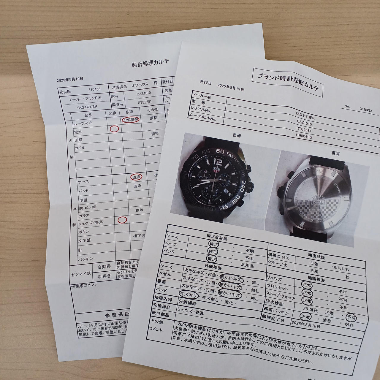 200防水ですが、OH時点で防水性が低下しているとのことです。 |