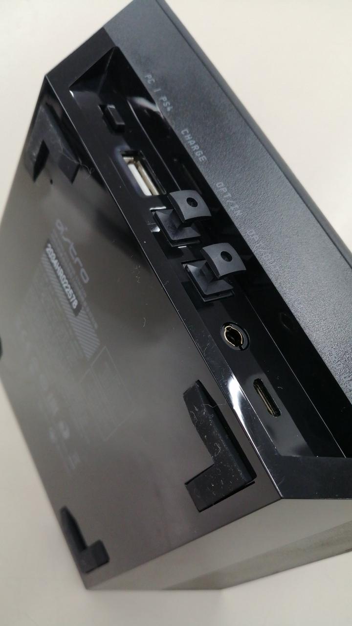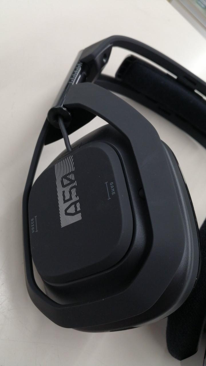 ヘッドセットの右側面のボタンでマイク音とゲーム音のバランスを調整可能 |