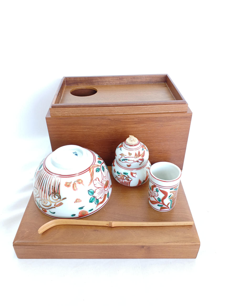 振り出し・茶巾筒・茶碗・茶さじ |