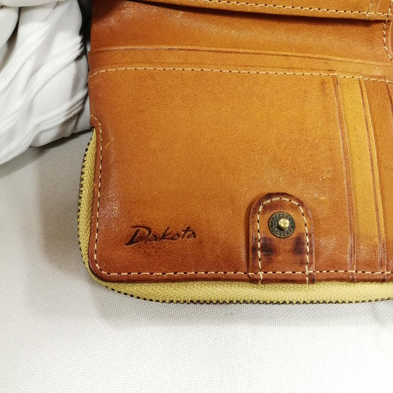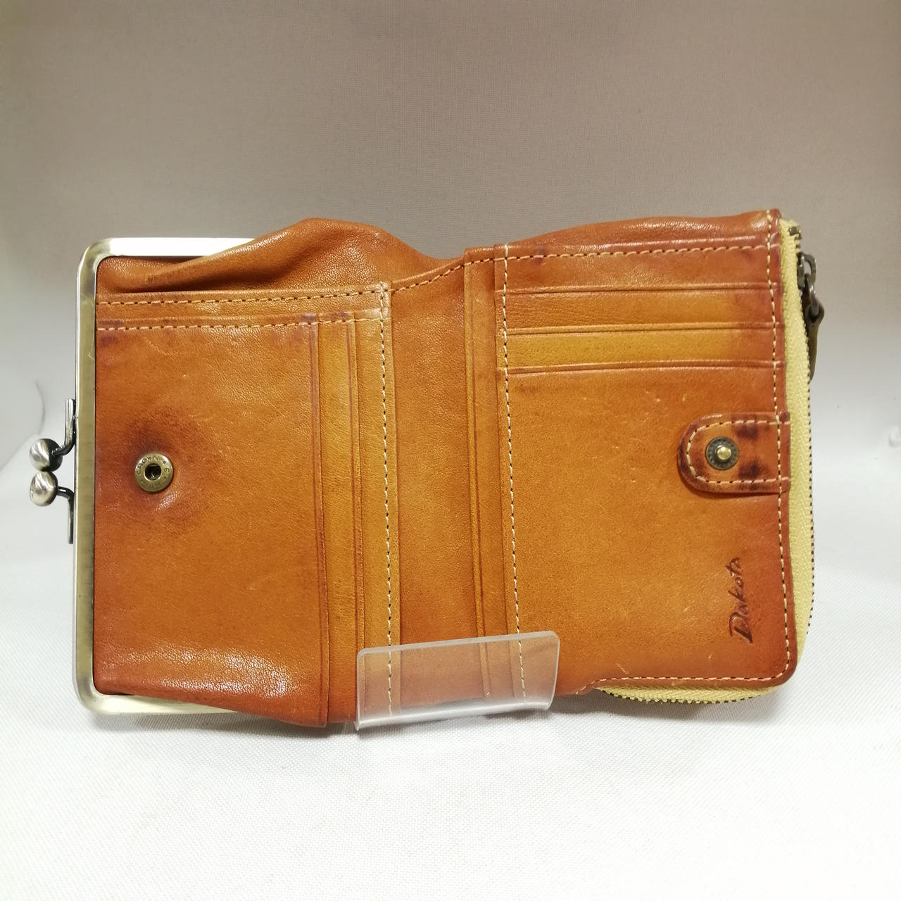 ダコタのプレドラ二つ折り財布になります。全体的に使用感やスレお汚れあり、状態考慮品となっております。 |