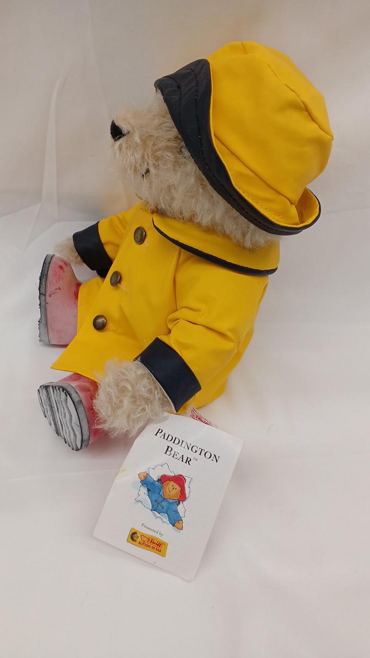 レインコートを着たパディントンです。2500体限定生産。本体のみ。※レインコートに劣化が見られます。若干しっとりしていて、長靴がブルーム現象で白くなっています。画像にて状態をご確認ください。