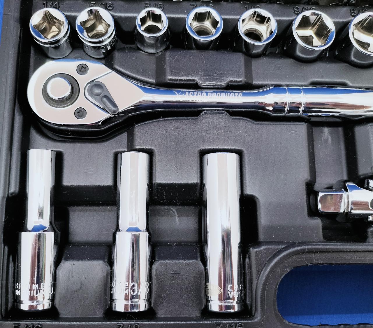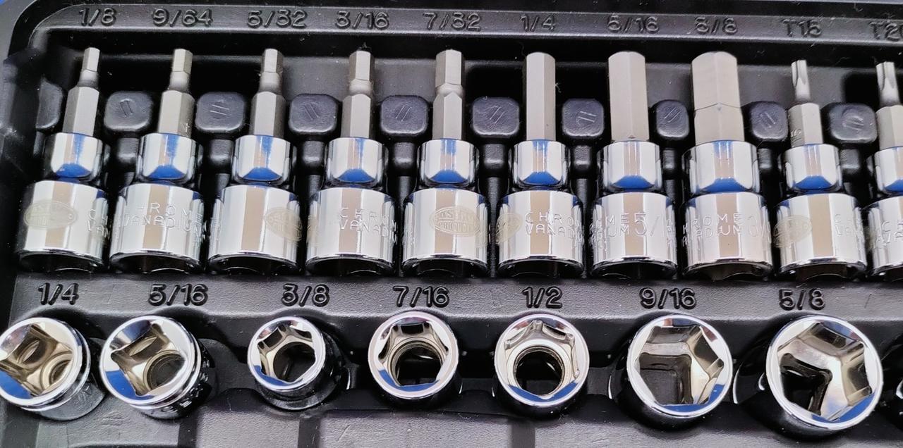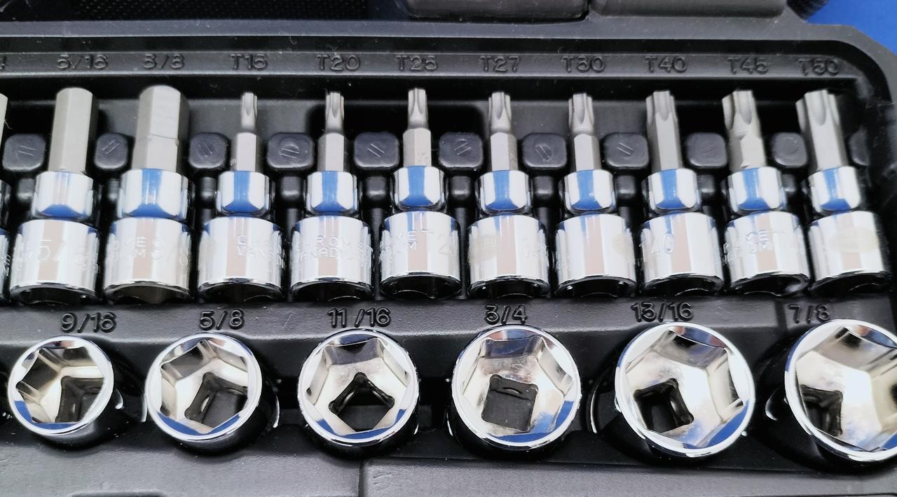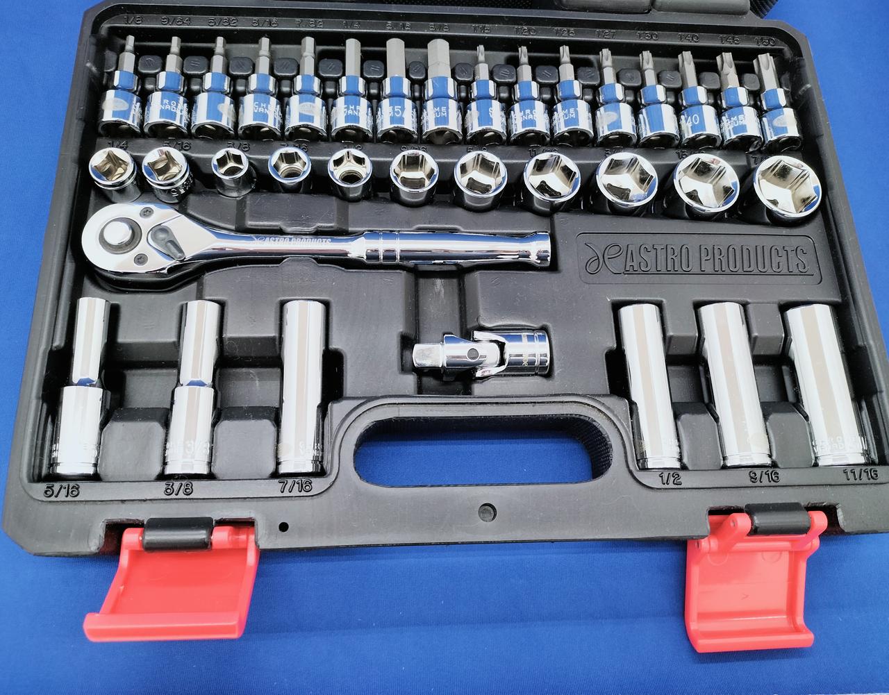 基本的な作業には充実の内容の48点組インチ工具セットです |