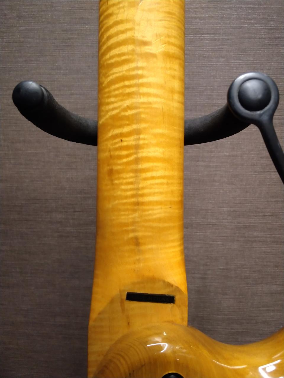 ネック裏側に数カ所細かな打痕あります。4フレット背面が一番深い傷になります(写真有)。ネック裏側のハイフレット側に黒い汚れ有り。
