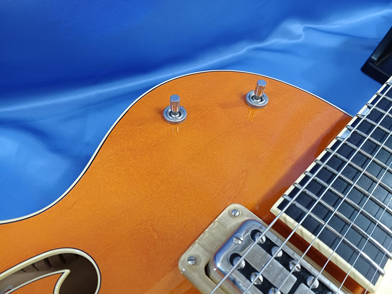 通常のG6120とは異なり、 「S(セッツァー)」「S(シグネイチャー)」「L(ラッカー)」「V(ヴィンテージ)」「O(オレンジ)」のBrian Setzerモデルにのみ与えられた称号を有しております |
