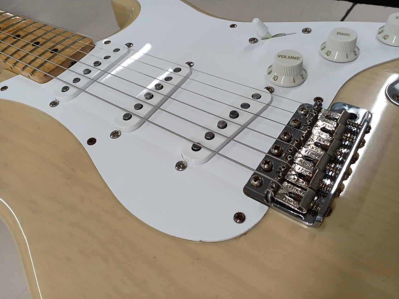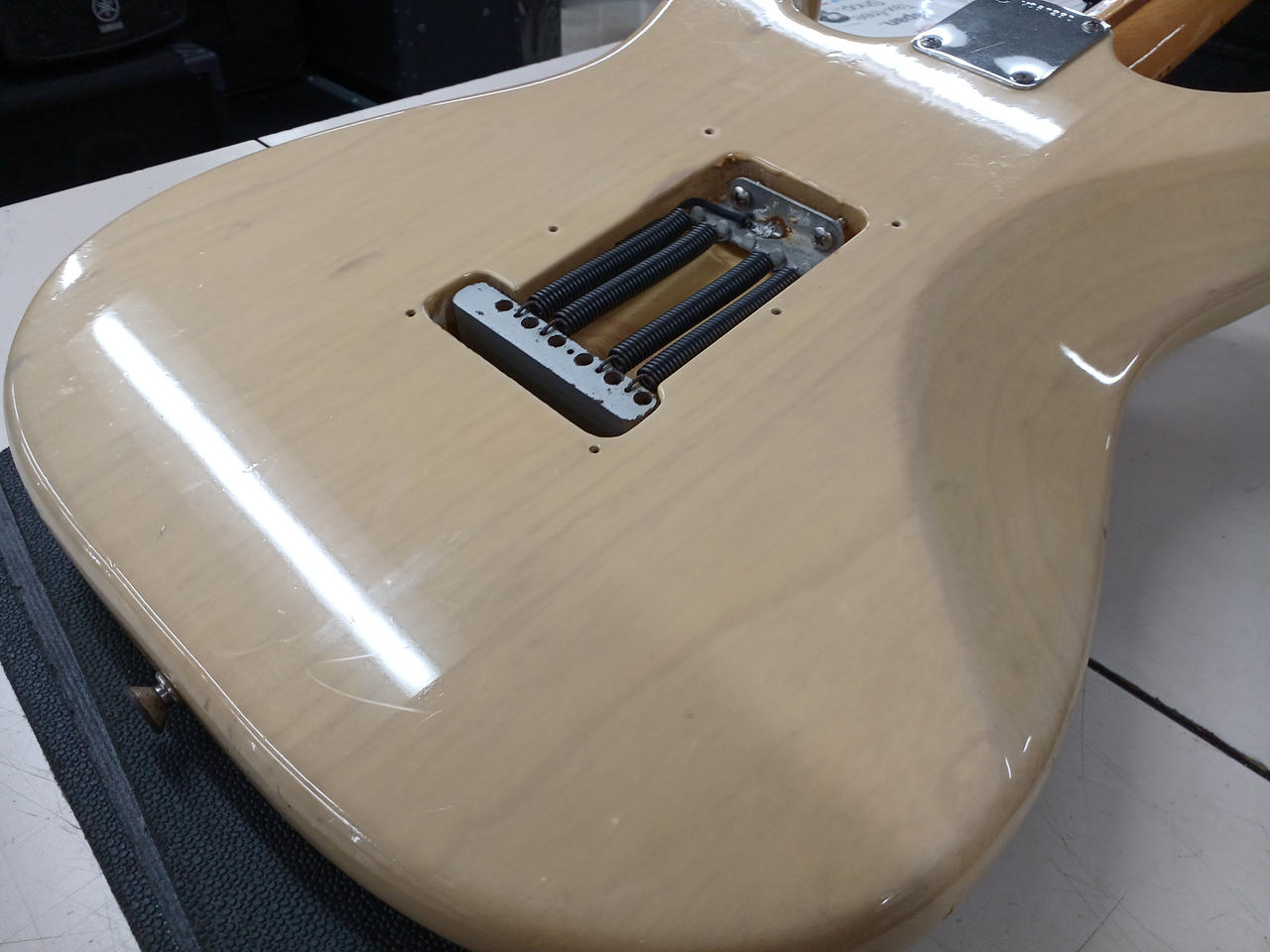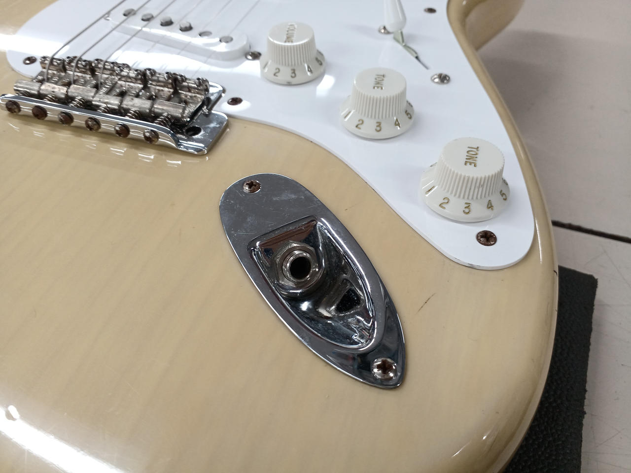 90年代にcustom shopから発売されていたビンテージシリーズから、56年の仕様を忠実に再現したモデル。ソフトVシェイプのメイプル1Pネックにライトアッシュボディ。ピックアップはcustom shop製Fat '50sに、その他電装系もCTS+オレンジドロップに一新されています。(フロント、センターはオリジナルPU付属)リアにハムのザグリがあり、キャビティ内は導電塗料が塗られています。重量3.3kgと軽量ながら、倍音豊かでレスポンスの早いサウンドです。 |