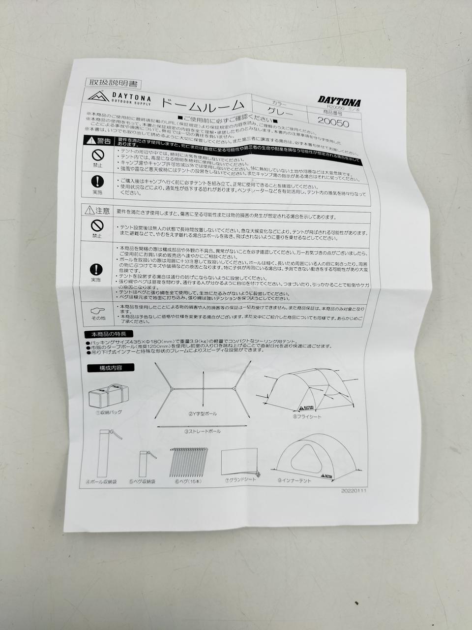 Y字ポール、ストレートポール、フライシート、ペグ15本、グランドシート、インナーテント(全て揃っています。) |