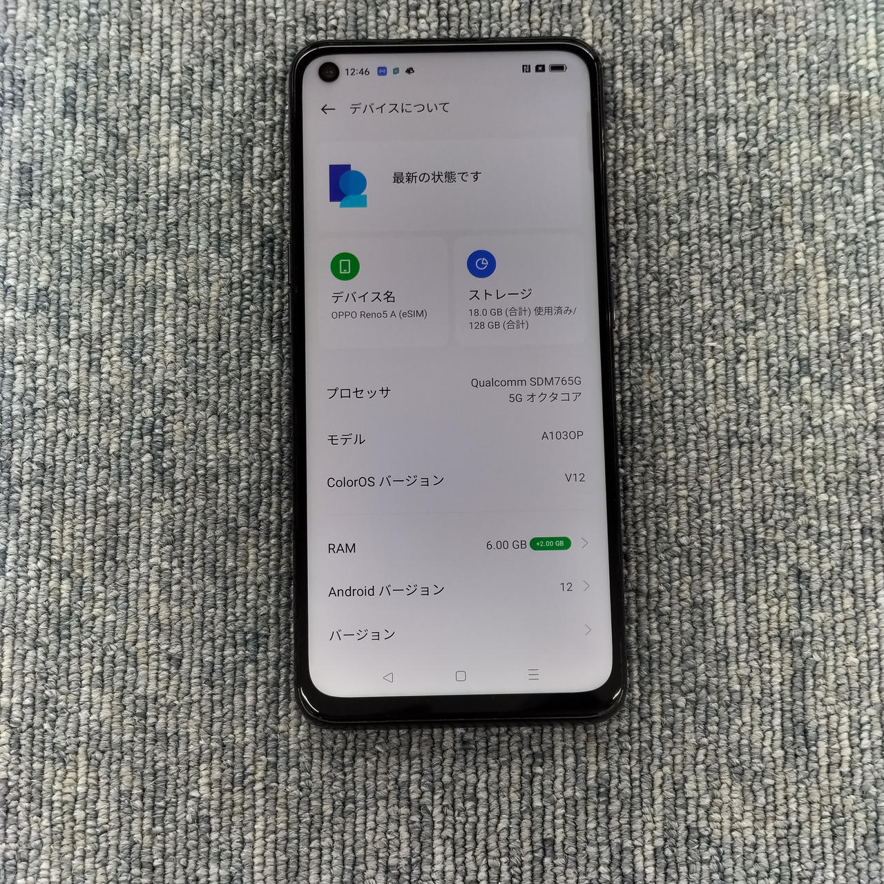 5G対応のスマホ 容量:128GB ColorOS V12(ANDROID12) 対応SIM:nano-SIM、eSIM キャリア:Y!mobile |