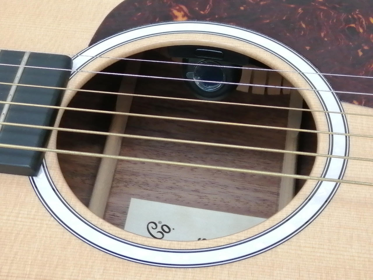 サウンドホールの中にバックライト付きのチューナーを搭載 |